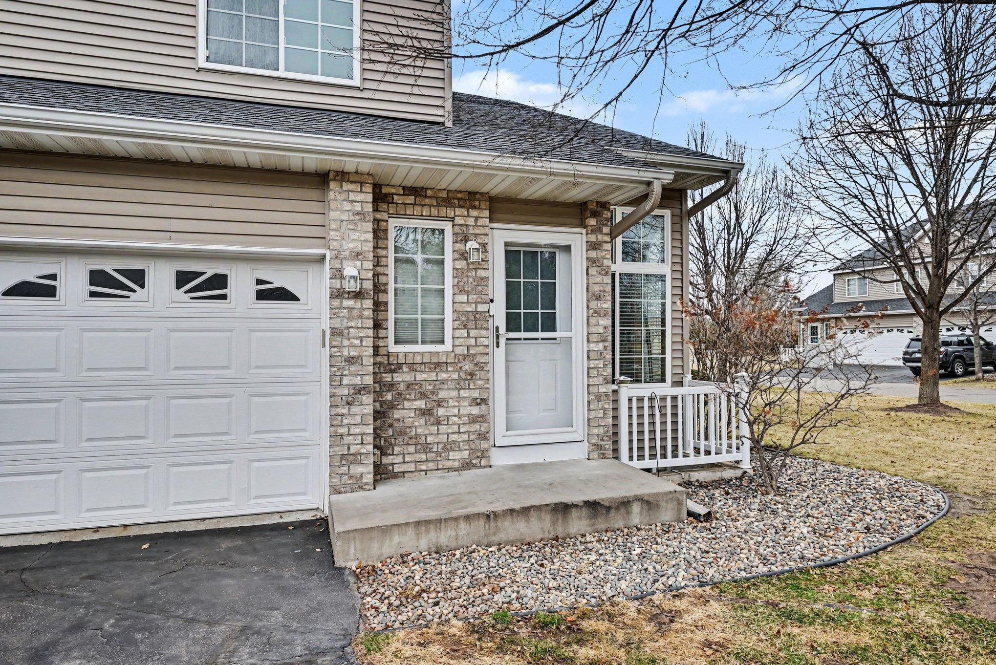 Welcome to this well-maintained end-unit townhome in Fields of Saint Michael with mature trees, and patio. Open main level with vaulted ceilings, natural light, and electric fireplace. Kitchen features stainless steel appliances, ample cupboard space and flows to dining area. Updates include newer carpet, paint, lighting, and roof. New sump pump and A/C unit. Upper-level loft offers flex space or potential 3rd bedroom. Unfinished lower level with egress window and bath rough-in for future expansion. Convenient location near parks, trails, shopping, dining, and schools.