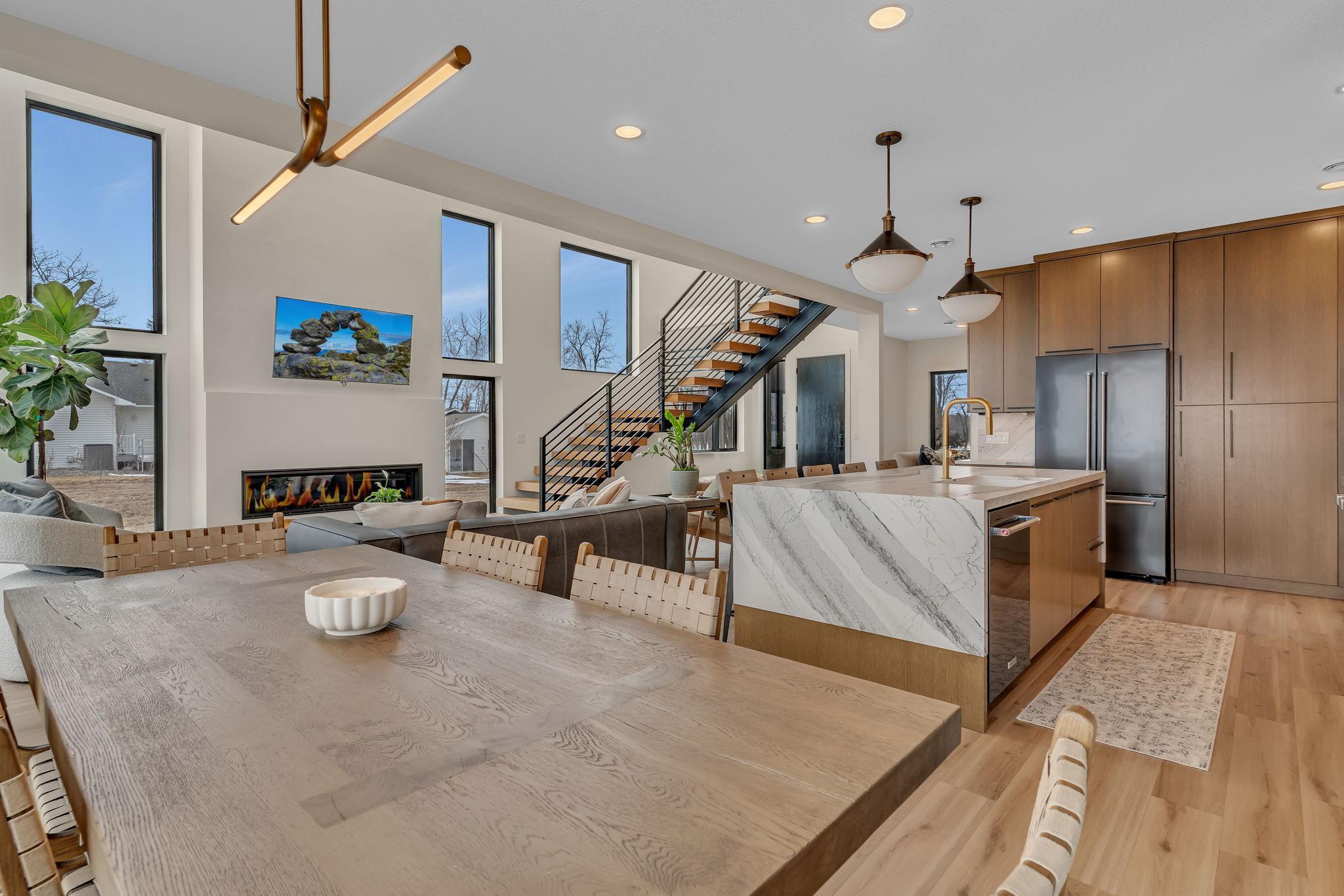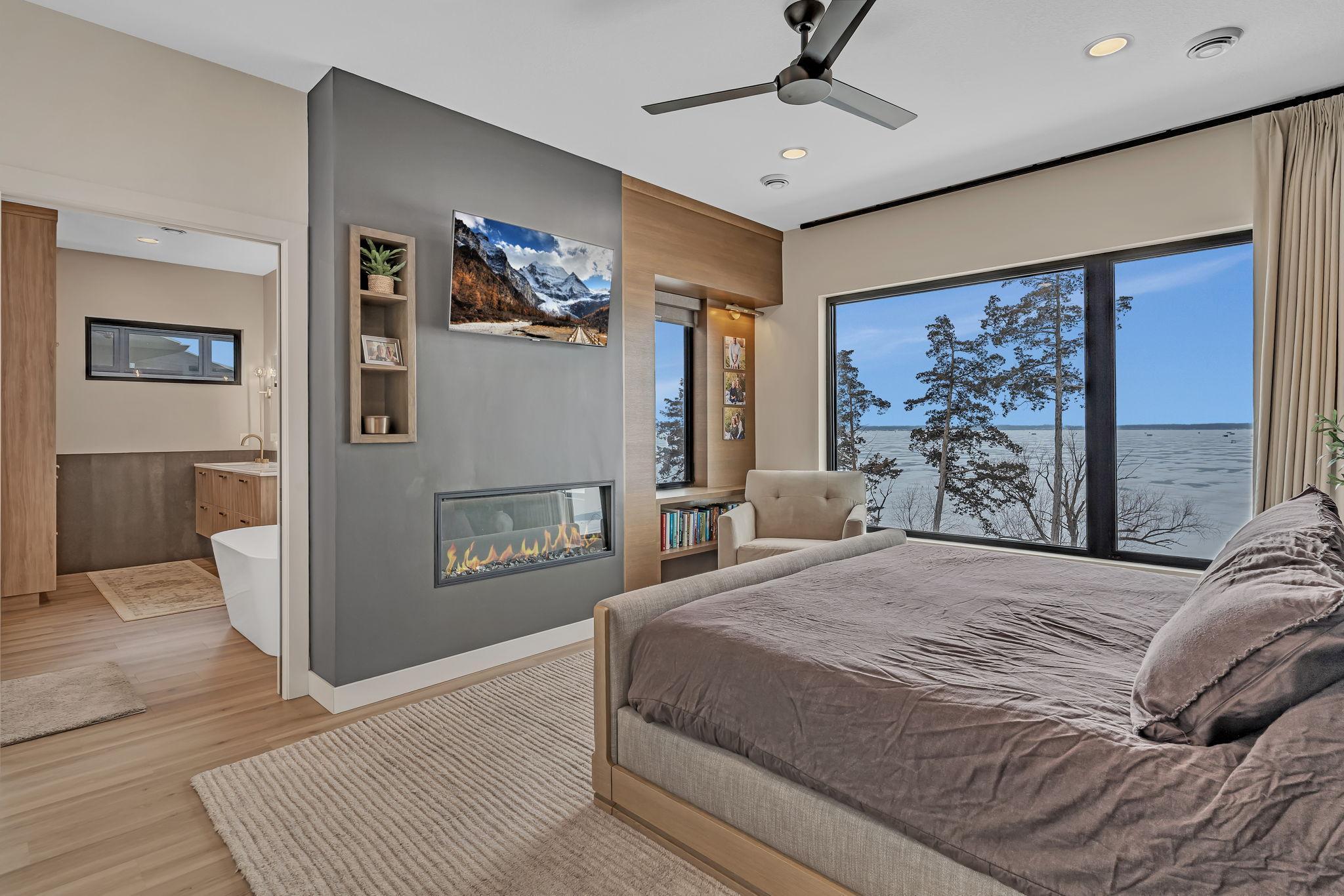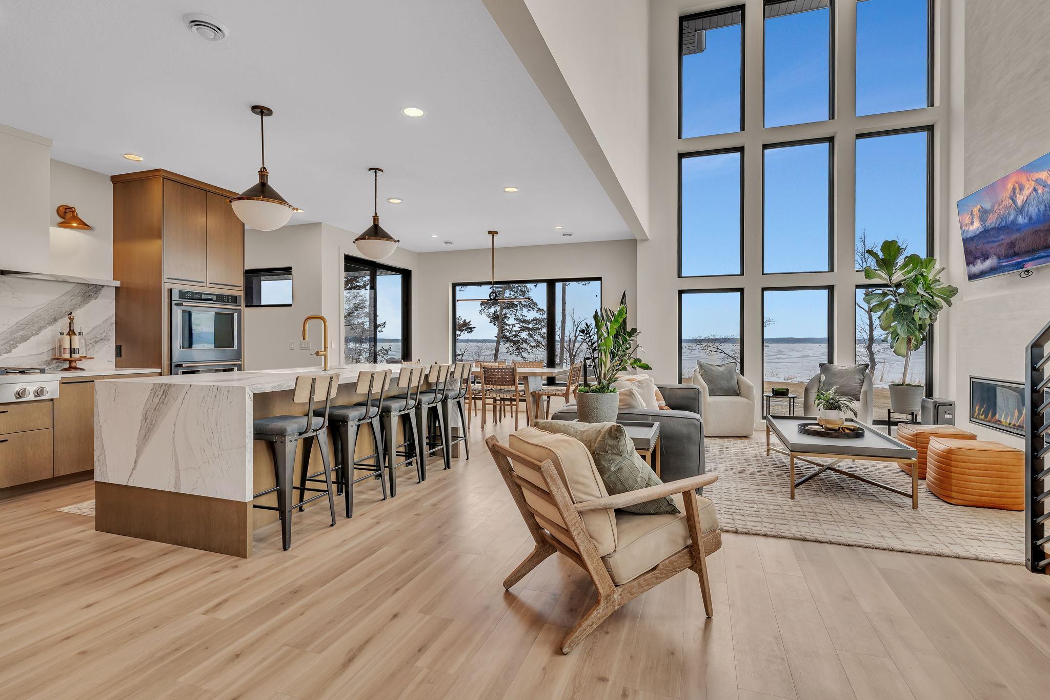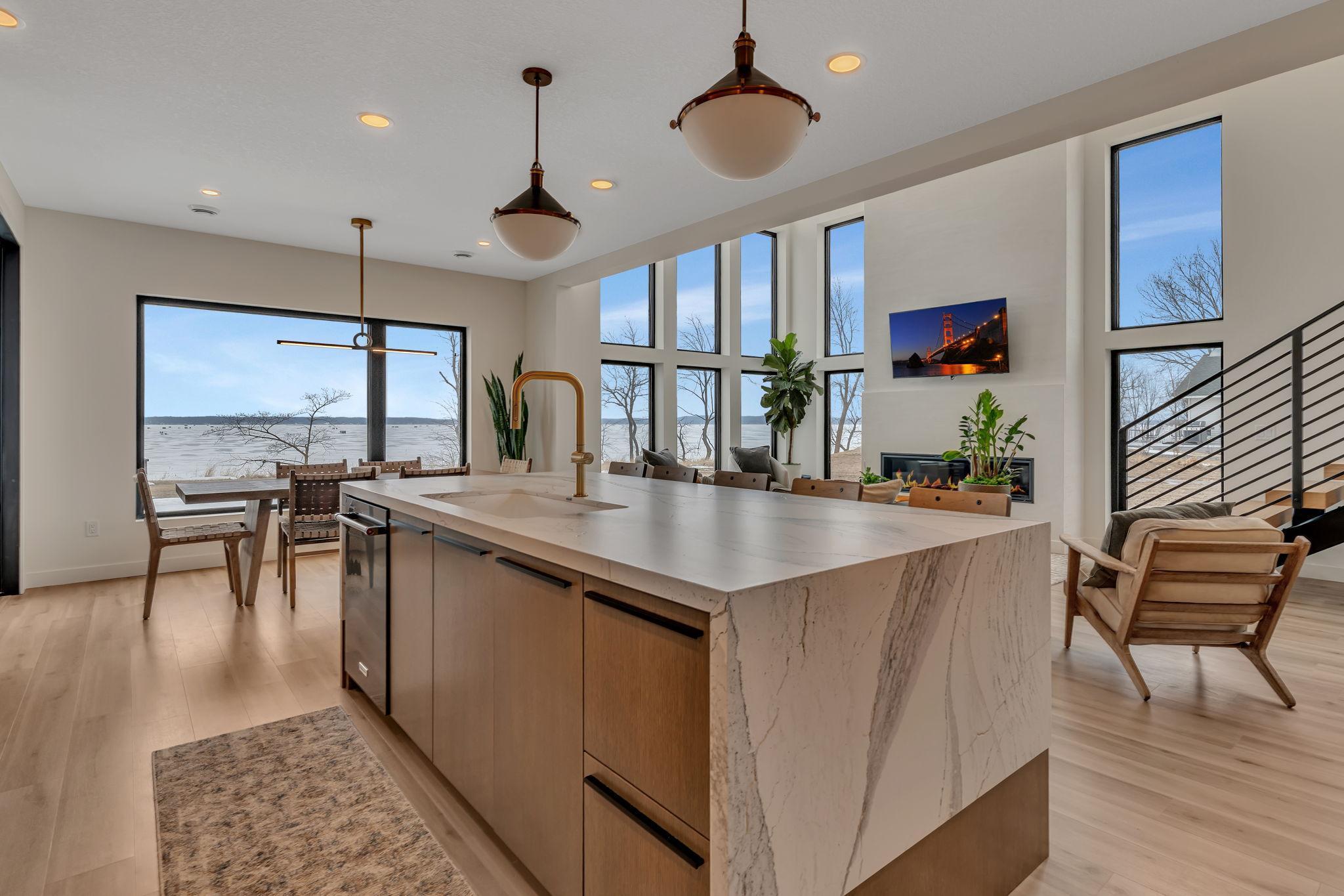 Featuring 4 bedrooms, 4 bathrooms, a private office, and 3-stall heated garage, this well designed home is breath-taking. The open-concept living area is highlighted by a soaring two-story fireplace with a Marmorino Palladino Travertine Application for an impressive aesthetic. Lakeside windows capture breathtaking sunsets and panoramic lake views and are highlighted throughout the home. The entertainer and chef will appreciate the dual main level kitchens and intentional cabinet lines. The center island and front kitchen is topped with unique premium Cambria countertops and breakfast bar. In-Floor heat runs throughout the main level. The primary suite houses its own fireplace, oversized walk-in closet, tub and custom shower with a Cristallo Luminescence wall! Enjoy morning coffee and sunrises from the private walk-out second-story balcony. As part of the Castle Shores association you’ll enjoy access to a heated pool, clubhouse and boat slip on Southwest Minnesota’s premier lake. Be sure to take the 3D virtual tour and Schedule your private showing today and experience this beautiful property!