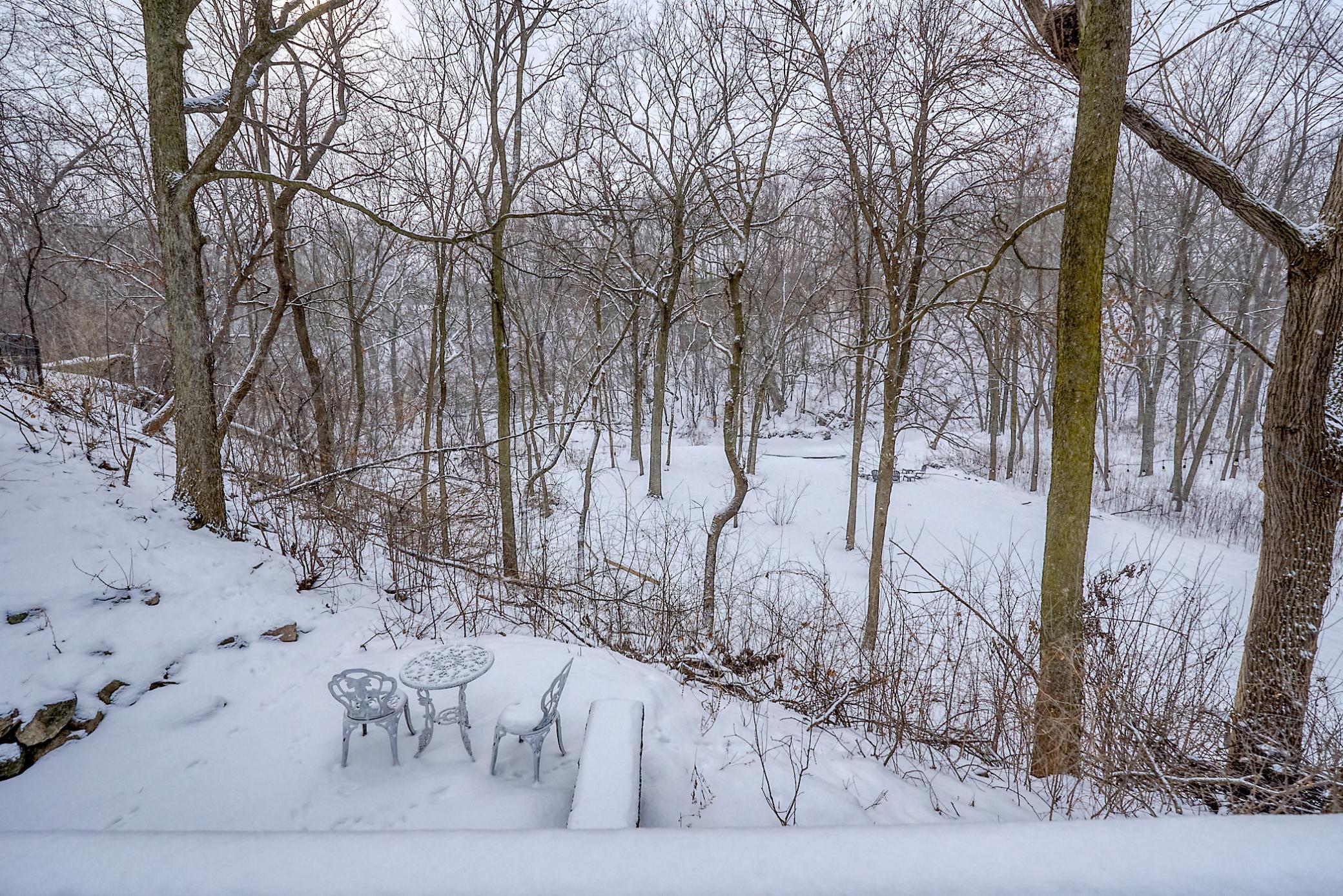 Grand Eden Prairie home designed for exceptional family living and for entertaining. Home boasts a remarkable and secluded backyard that gently slopes down to Purgatory Creek—making it a rare find! The expansive gourmet kitchen opens seamlessly into a vaulted sunroom showcasing two-story windows and panoramic views of your private outdoor sanctuary. Enjoy three architectural fireplaces throughout the home, including one in the fabulous owner’s suite featuring a cathedral ceiling, spacious walk-in closet, and a luxurious spa bath complete with a separate shower room, dedicated vanity area, and soaking tub for unwinding. The main-level family room impresses with its 12-foot ceiling and features a striking wood-paneled fireplace framed by classic built-in bookshelves—creating a warm, inviting space for everyday living or cozy gatherings. The walkout lower level is designed for entertaining—offering a generous amusement room, billiard area, stone-surround fireplace, and a walk-behind wet bar equipped with a built-in refrigerator and wine storage. Additional highlights include custom hardwood built-ins throughout, a Garage Force–coated garage floor with a lifetime warranty and professionally designed paver steps that lead you to the serenity of —where seasonal beauty and local wildlife create a peaceful backdrop year-round. Note, the property abuts public land. Purgatory Creek is not on the lot.