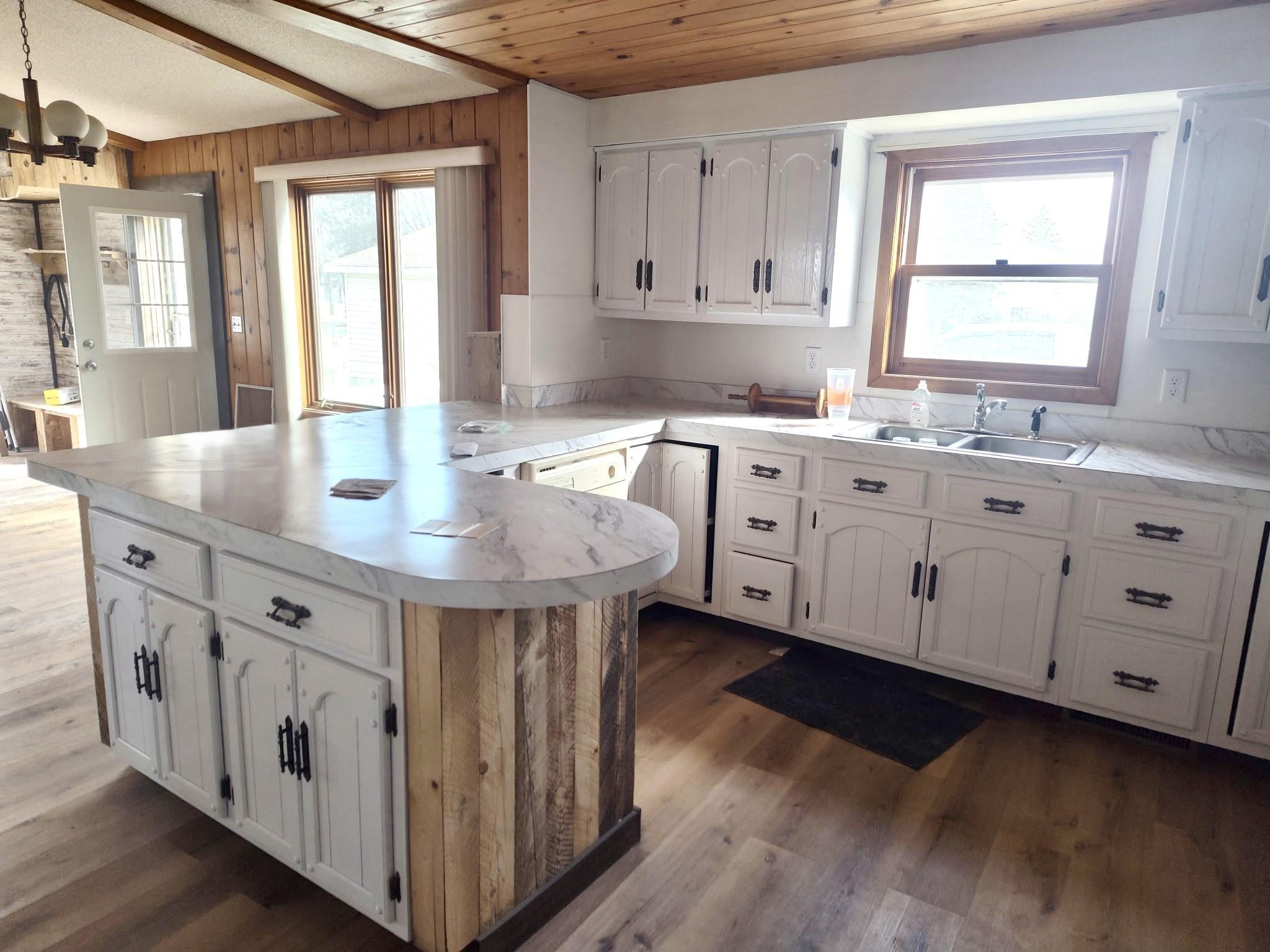 Calling all investors, contractors, or anyone looking for an opportunity to finish your new home or for a quick flip! TAKE A LOOK at this Charming Staples Home on an Attractive, Corner & Double Lot (close to an Acre) with an Oversized 2 Stall Garage & Shed! Located next door to a nice community park & with biking trails a block away, this 3 Bedroom Home just needs the finishing touches to become a Great Place to Live! Significant updates have been made including New Plumbing, New Furnace & Ductwork, New Wood Stove, New Water Heater, Wood Flooring, Gutters, more Kitchen Cabinetry added, New Stove, Dishwasher, Microwave, some New Windows, Bathroom was gutted & now w/ New Tub & Vanity, Walk-in Closet was created in Primary Bedroom, Lights & RV plug were added to the Garage & MORE! Option to heat with natural gas or wood! Most supplies needed to finish the remodel are at the property & INCLUDED! Basement has a nice space to create a Family Room & there is space to add a 2nd Bath, if desired. What's left to finish? ...about 2/3 of the main level flooring, kitchen counters & trim. Once complete, you'll Enjoy the Open Concept Living, Relax on the Wrap-Around Deck, or Snuggle in front of the Fireplace in the Spacious Living Room with Vaulted & Beamed Ceiling! Better set up your showing today!