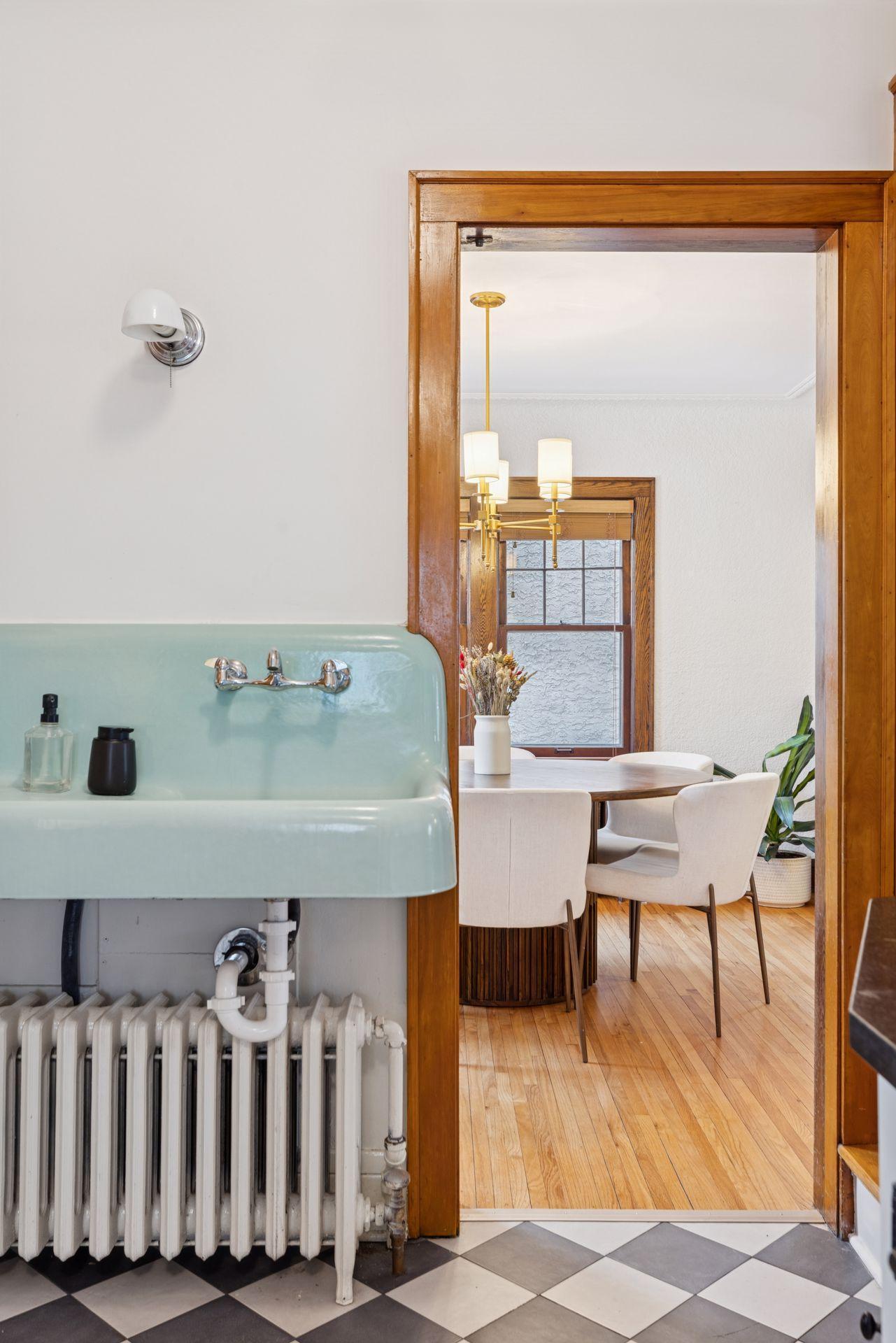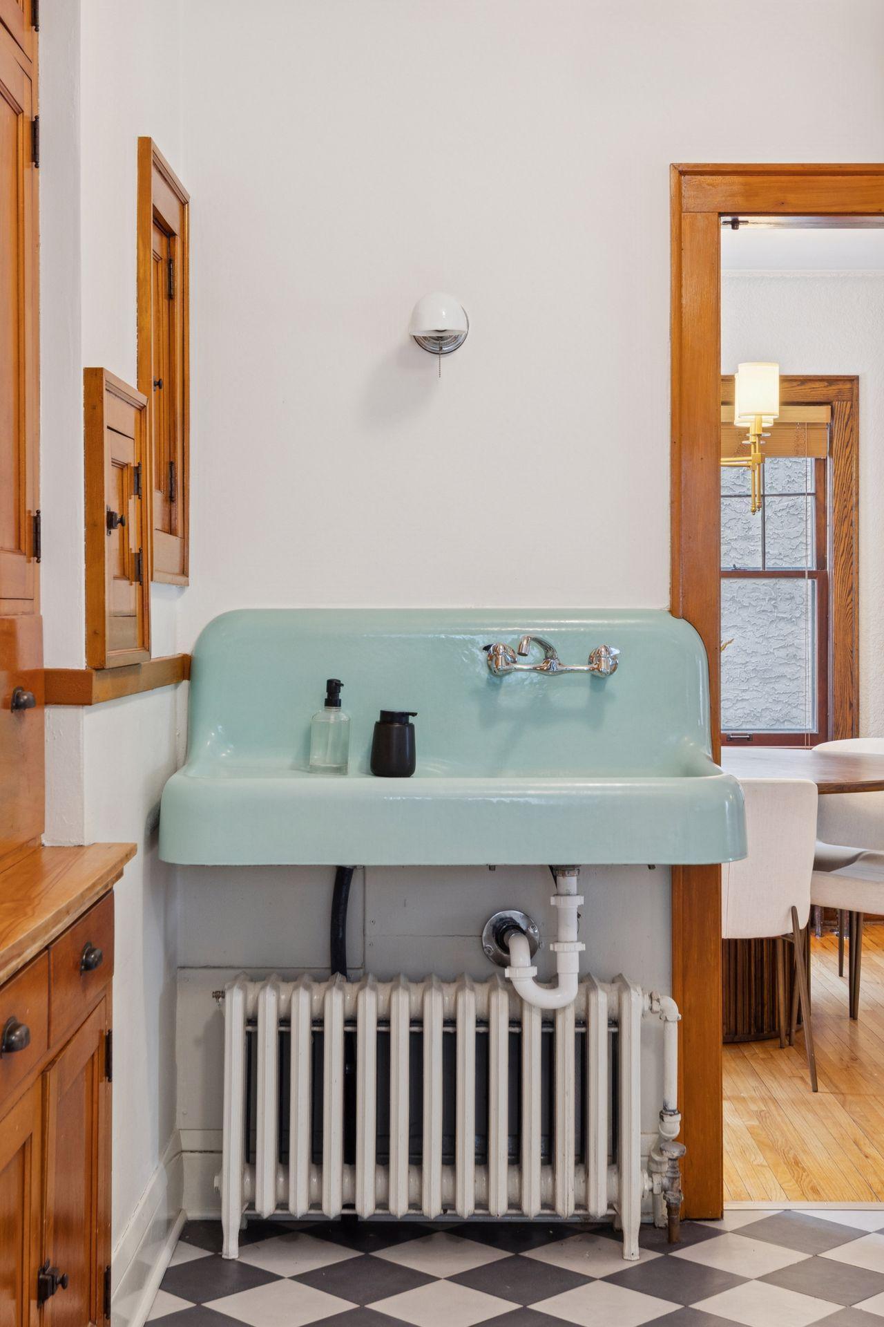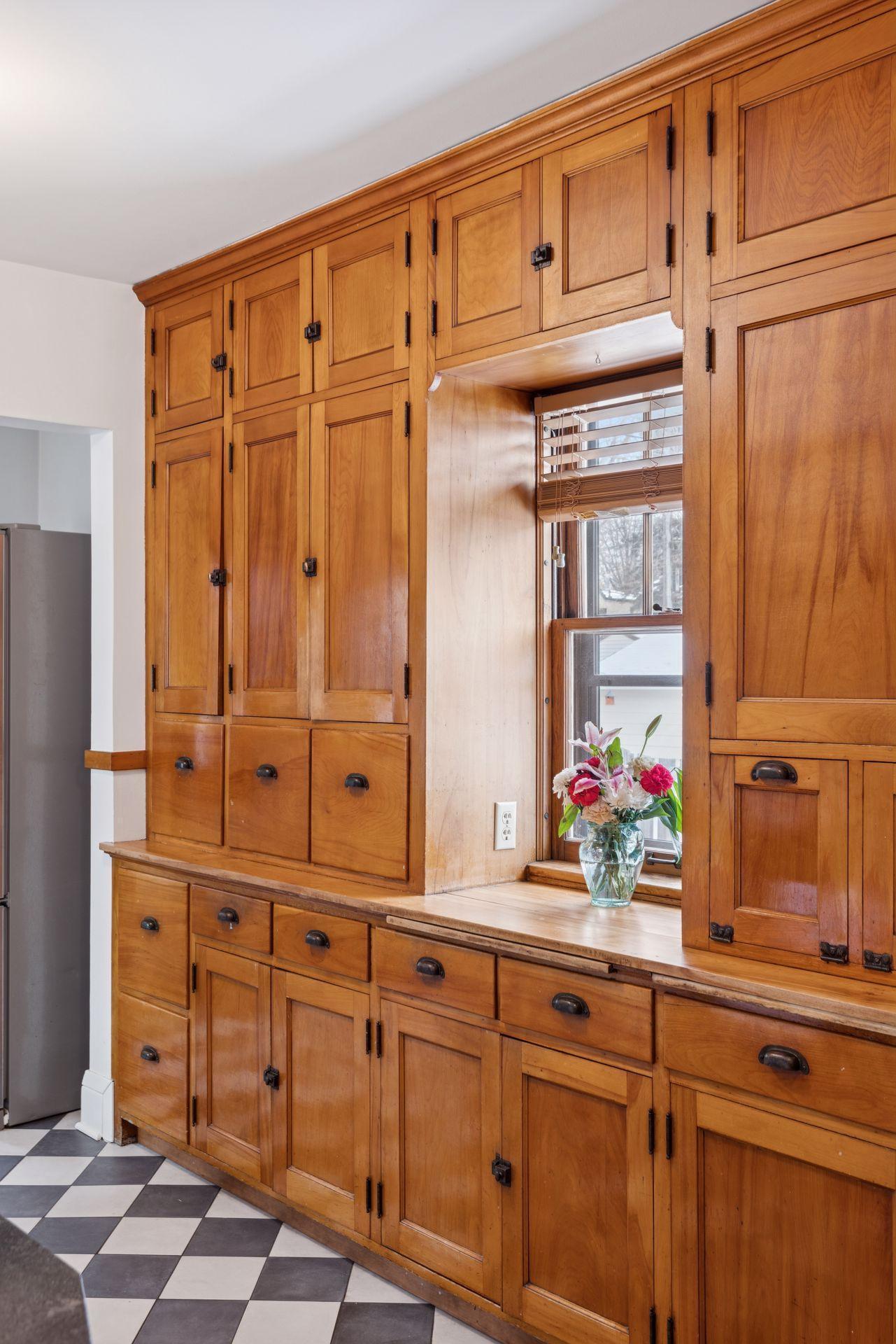 The main level features warm hardwood floors, detailed woodwork, a brick fireplace, and beautiful built-ins in the dining room. The kitchen provides abundant cabinet space, a new electric oven, and the added comfort of heated electric floors. Radiator heat with updated PEX plumbing and Honeywell two-zone controls offers efficient and consistent warmth throughout the home.