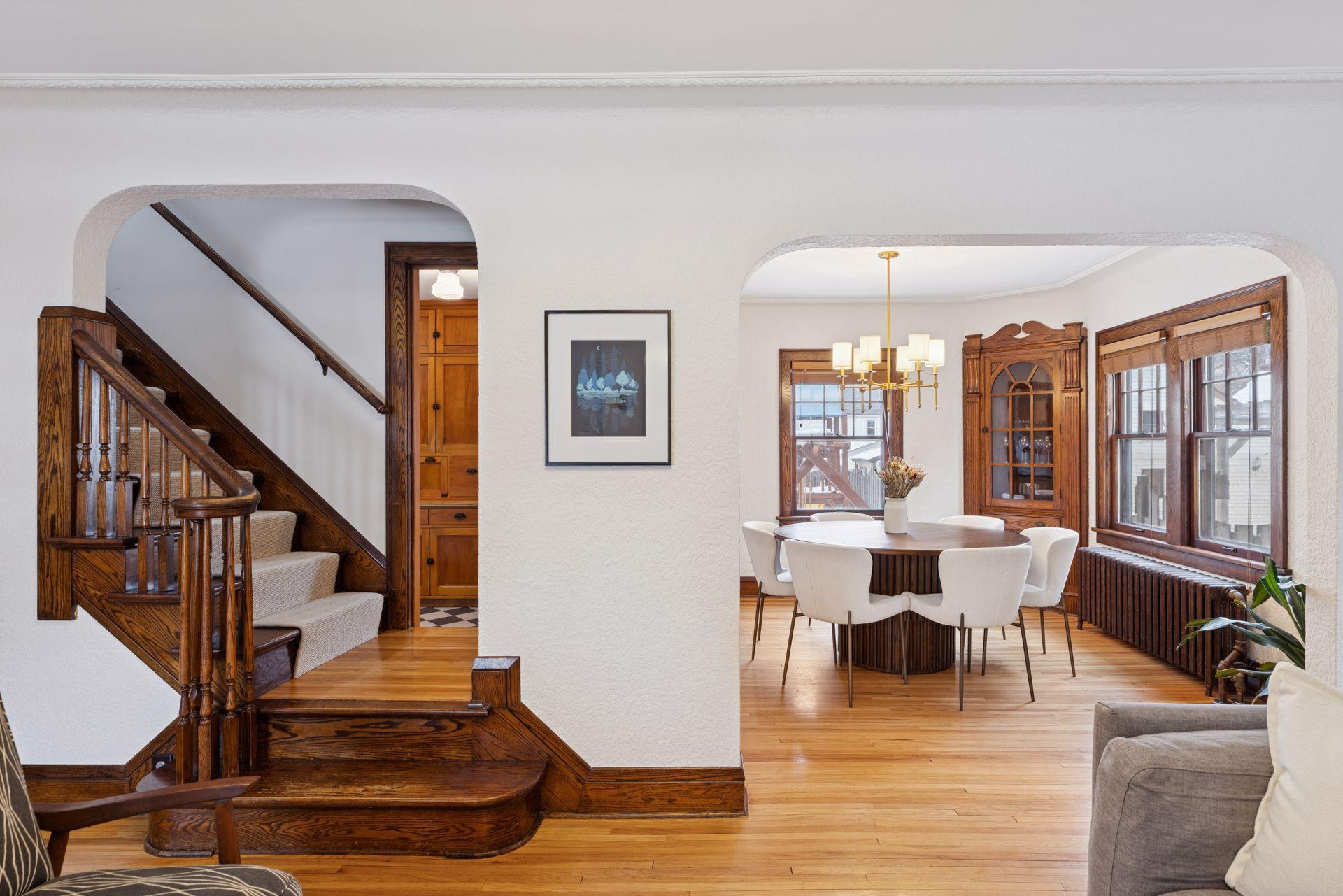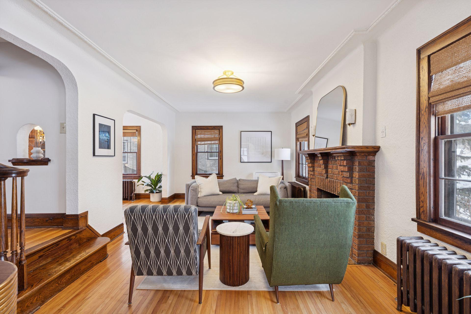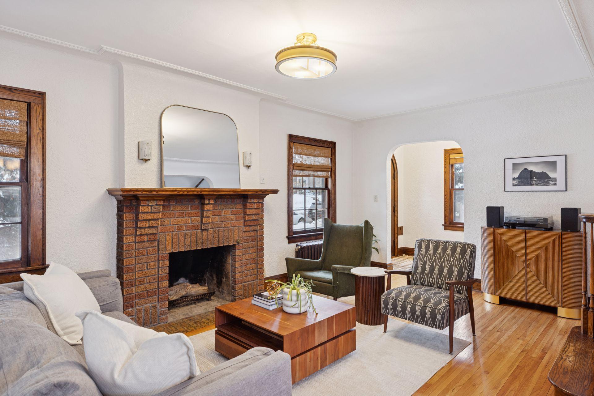 Welcome to this charming 3-bedroom, 2-bath Tudor located in the highly sought-after Highland Park neighborhood of St. Paul. Offering a classic design with thoughtful improvements throughout the years, this home blends character, comfort, and convenience. The main level features warm hardwood floors, detailed woodwork, a brick fireplace, and beautiful built-ins in the dining room. The kitchen provides abundant cabinet space, a new electric oven, and the added comfort of heated electric floors. Radiator heat with updated PEX plumbing and Honeywell two-zone controls offers efficient and consistent warmth throughout the home. Upstairs, you’ll find three bedrooms along with generous storage options including a walk-up attic. The home also includes a radon mitigation system, drain tile, sump pump, a 2019 water heater, and a mini split AC system installed in 2024 to keep every level of the house the perfect temperature. A new washer, dryer, and stove are included. Outside, enjoy a fully fenced yard and patio space perfect for relaxing or entertaining. The 2.5-car garage provides ample room for parking and storage. Ideally situated near Highland Park’s walkable shops and restaurants, with quick access to downtown Saint Paul, Minneapolis, the airport, and major highways, this home offers both neighborhood charm and everyday convenience.