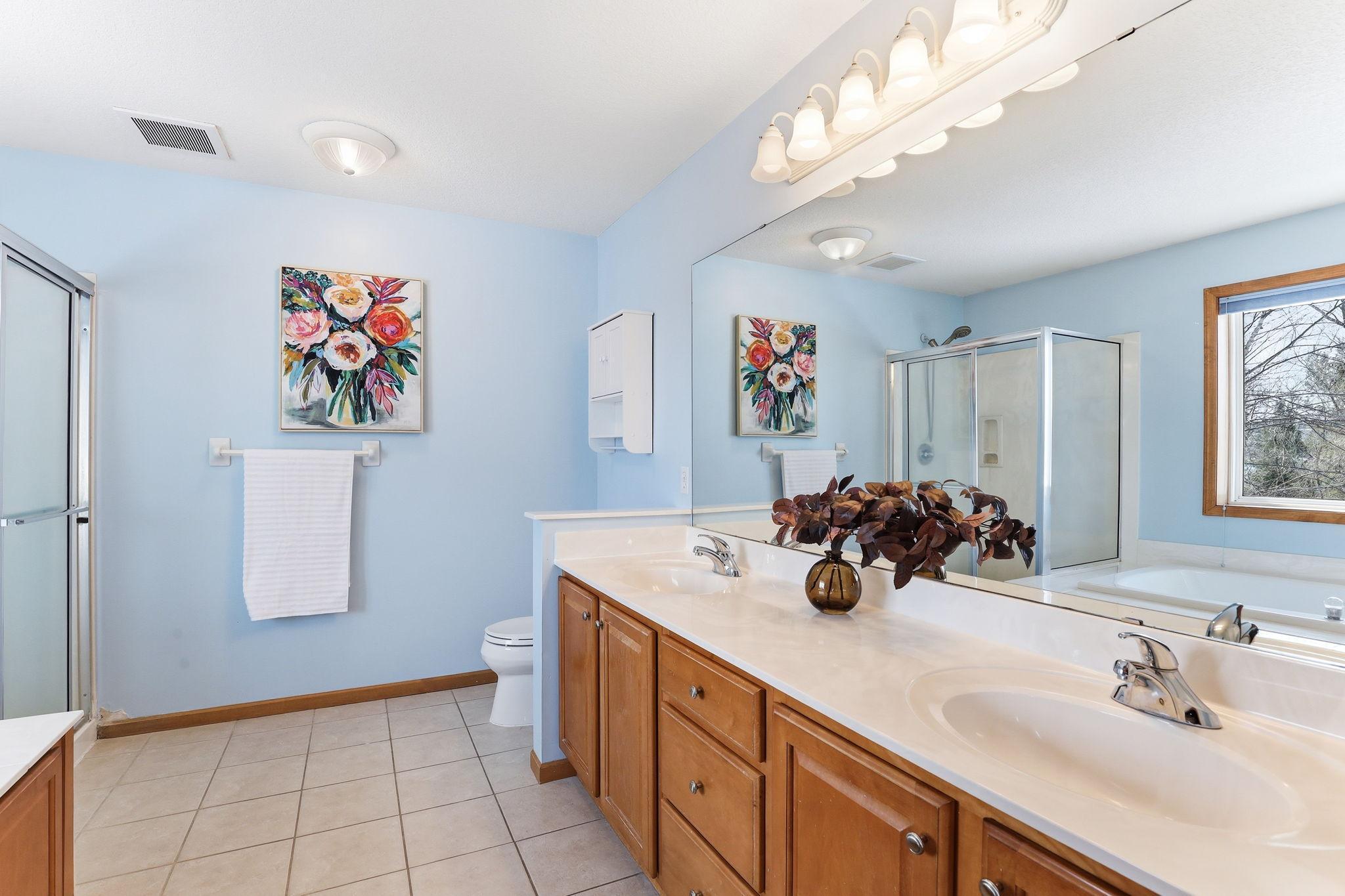 Bath Description: Double Sink; Main Floor 1/2 Bath; Upper Level Full Bath; Full Primary; Private Primary; 3/4 Basement; Jetted Tub; Separate Tub & Shower; Walk-In Shower Stall