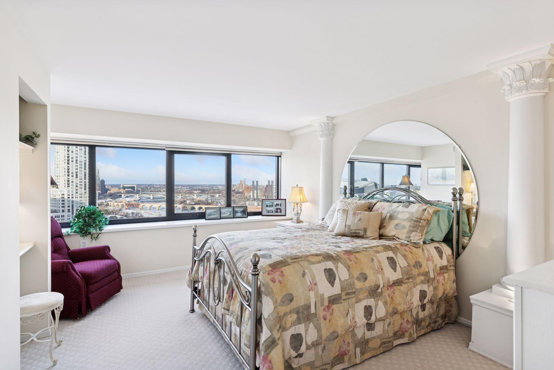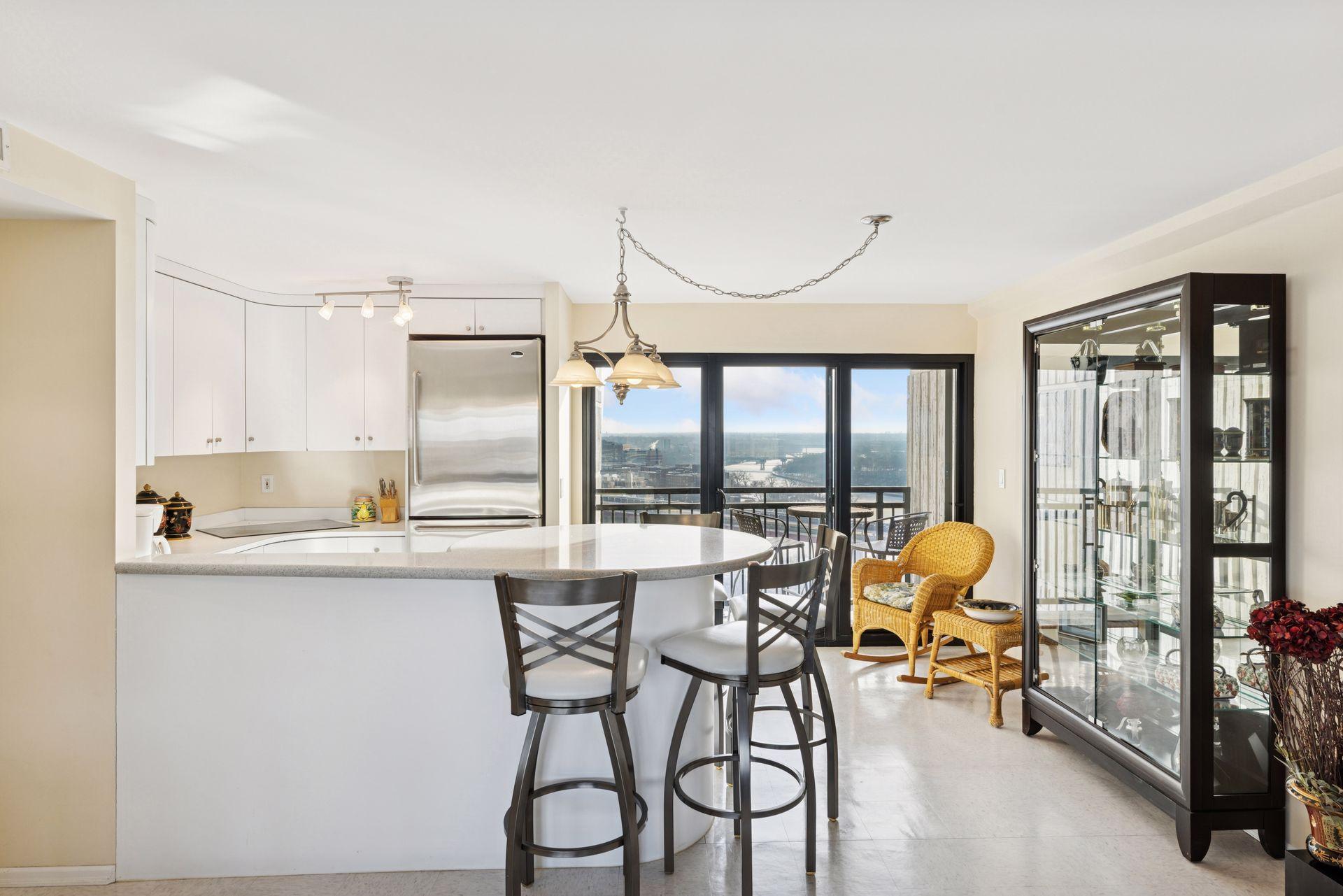 Public Remarks: Sophisticated city living at Riverview Towers! This 19th floor location with amazing views facing the Mississippi River, falls and city skyline awash with bright natural light. This unit originally a 2-bedroom floorplan was renovated to become larger living and dining areas. The Kitchen has great cabinetry along with a countertop eat-in space. Adjacent is the entry door to an outdoor porch with down-river and U of M campus views. A full hall bath leads to the primary suite. The ensuite bath is a 3/4 bath with walk-in shower. Riverview Towers is an established condo where Community living is comprehensive; monthly HOA includes all utilities, basic cable, internet, heated indoor pool, whirlpool, fitness room, sauna, outdoor patio with gas grills, community rm w kitchen, package room, prof. mgmt. New HOA policy now permitting rentals (with restrictions), and pets (with restrictions.) Tucked away near the U of M law school, easy access to downtown, the University and highways to anywhere.
