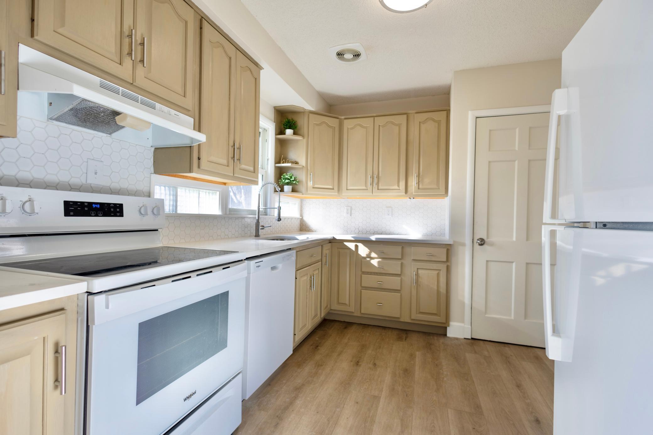 Stunning remodeled 2 bedroom, 1 bathroom with room to expand downstairs in desirable neighborhood in Golden Valley. This warm and beautiful home is move-in-ready with a flexible floor plan and natural light. Kitchen remodel includes refinished cabinets with new quartz countertops, tiled backsplash, new hardware, new appliances, new sink and faucet. New HVAC system and air conditioning unit Nov. 2025. Electrical upgrades include new outlets and lighting throughout the home. Fresh paint throughout the home. Bathroom remodel includes a 5 year warranty. New windows in dining room with warranty. New luxury waterproof vinyl plank floors throughout main level. New patio and entryway door, and a fenced in backyard! Conveniently located near Theodore Wirth Park, shopping and dining at West End, with quick access to Hwy 100 and I-394, and just minutes from downtown Minneapolis. This turn-key home won't last long. Come check it out!