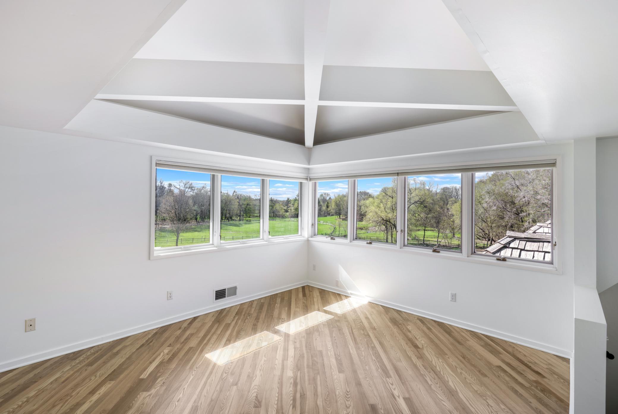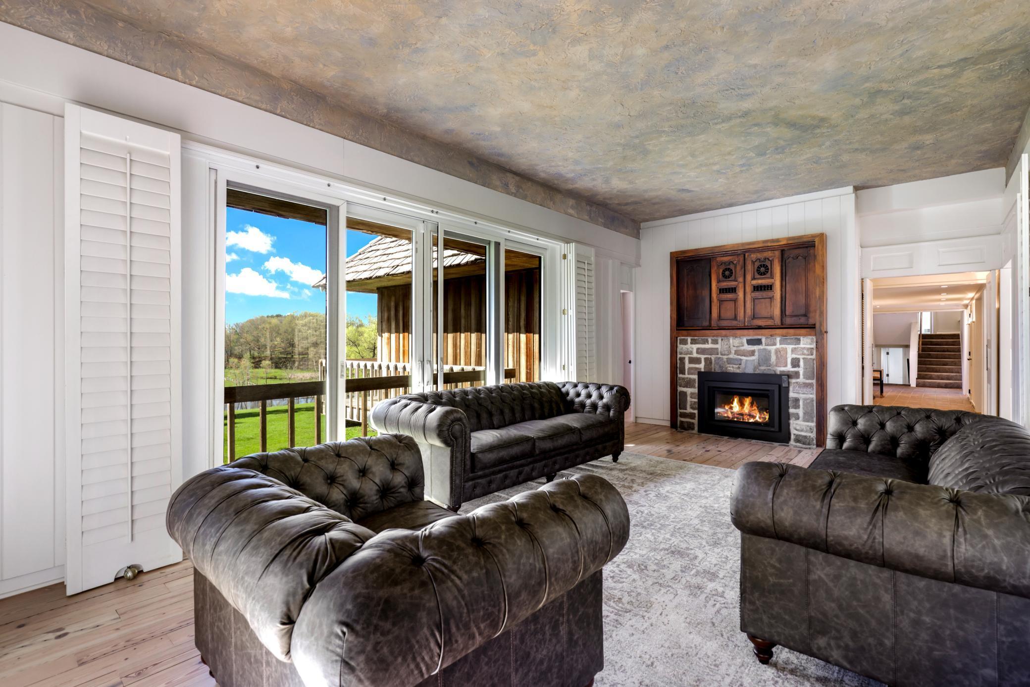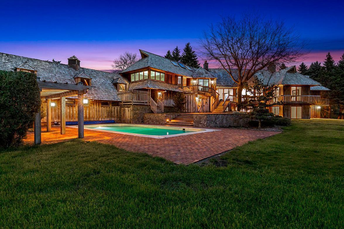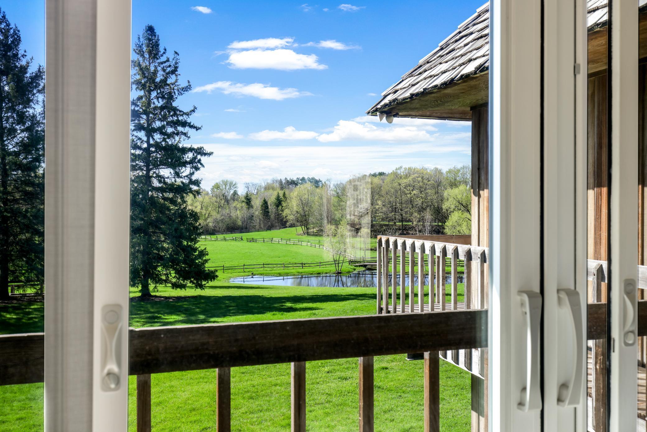 Move right in, renovate, or tear-down to build new at one of Medina's premier home sites in the countryside, just 12 minutes from 494. Designed by Humphrey & Hardenbergh, the estate was meticulously developed to maximize privacy, views, integration with nature, and use for outdoor activities. Built of durable, timeless, fine redwood lumber, the home was built to last and carefully positioned to place walls of windows along the southern elevation, bringing in natural light and breathtaking views of the vast estate and private pond. The home and grounds have been carefully maintained and updated throughout the chain of ownership. For equestrian enthusiasts, the property features riding trails, an outdoor arena, and a four-box stall barn with a feeding loft that is connected to the residence. Built in 2018, the 42' x 48' Morton Building features two additional finished spaces that can be used for workshop, exercise space, sport court, or flex, with in-floor heat and a half bath.