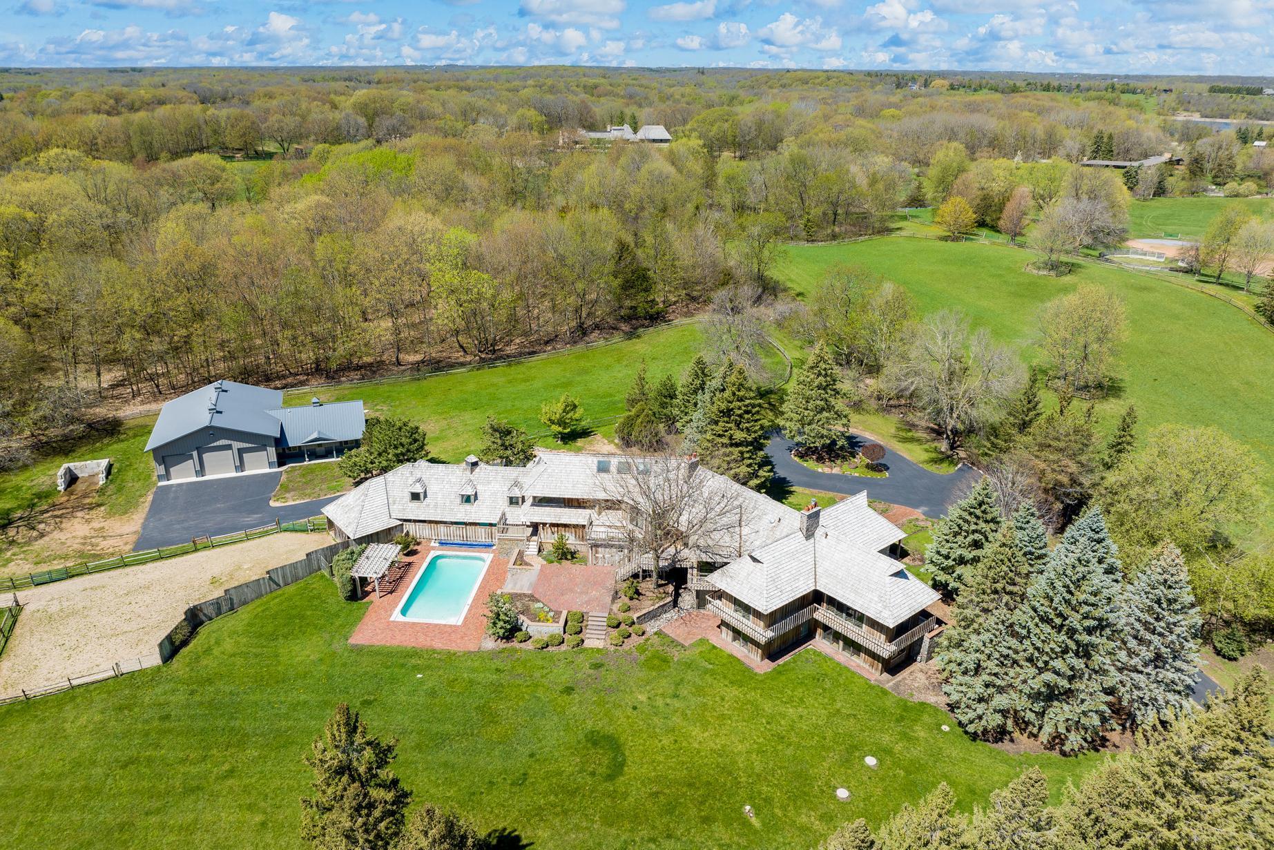 Public Remarks: Move right in, renovate, or tear-down to build new at one of Medina's premier home sites in the countryside, just 12 minutes from 494. Designed by Humphrey & Hardenbergh, the estate was meticulously developed to maximize privacy, views, integration with nature, and use for outdoor activities. Built of durable, timeless, fine redwood lumber, the home was built to last and carefully positioned to place walls of windows along the southern elevation, bringing in natural light and breathtaking views of the vast estate and private pond. The home and grounds have been carefully maintained and updated throughout the chain of ownership. For equestrian enthusiasts, the property features riding trails, an outdoor arena, and a four-box stall barn with a feeding loft that is connected to the residence. Built in 2018, the 42' x 48' Morton Building features two additional finished spaces that can be used for workshop, exercise space, sport court, or flex, with in-floor heat and a half bath.