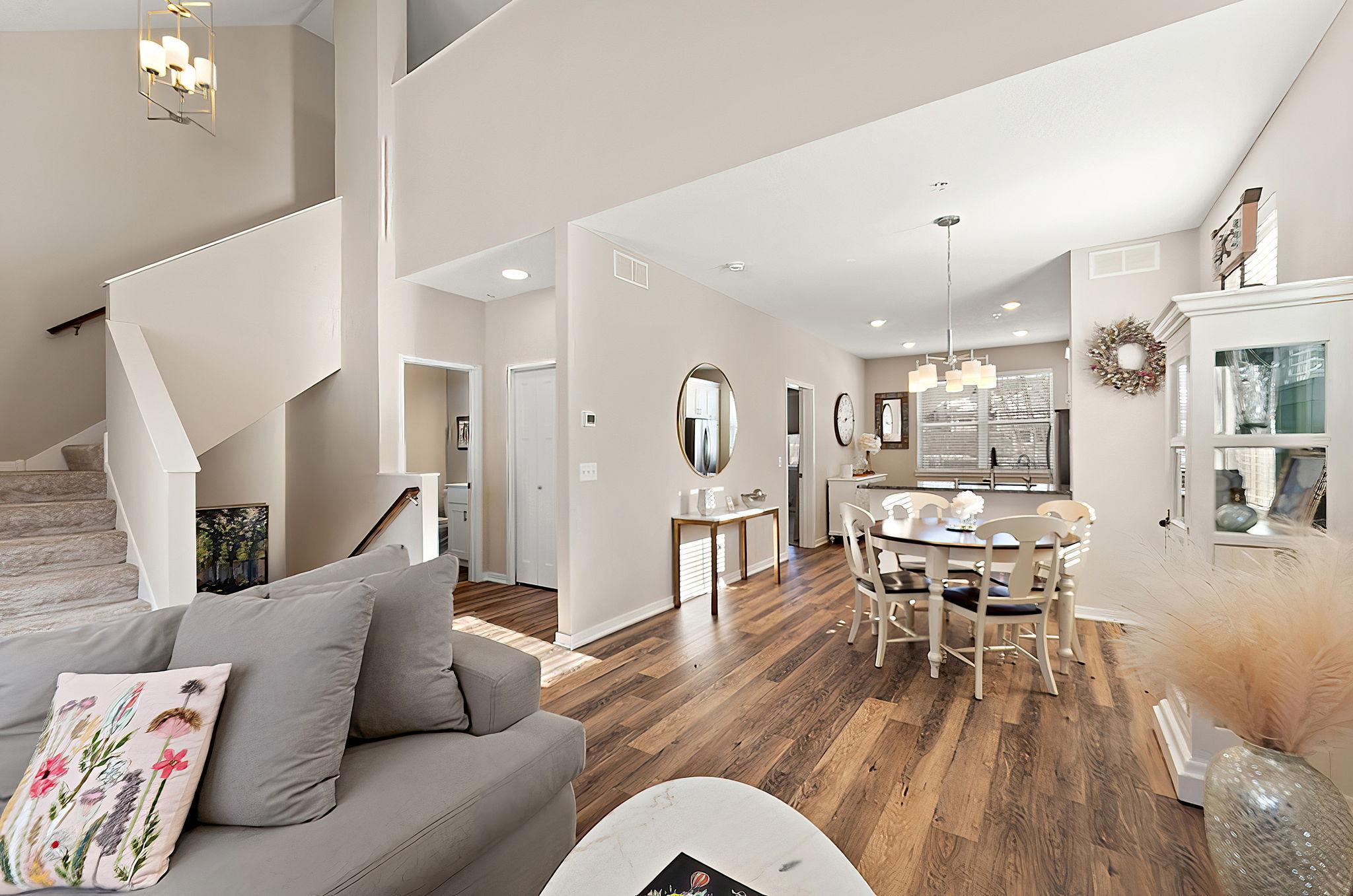 Incredible, Rare opportunity to own this sun-filled end-unit townhome in the highly desirable Maplewood neighborhood, thoughtfully designed by New Century and developed by Robert Engstrom. Abundant windows and transoms on three sides flood the home with natural light. The impressive open floor plan features a welcoming living room that flows seamlessly into the informal dining area and kitchen, complete with granite countertops, breakfast bar, and stainless-steel appliances (all included). Soaring ceilings in the foyer and great room are highlighted by a cozy gas fireplace. The main-level owner’s suite is perfectly positioned and offers a private bath and an oversized walk-in closet, plus a convenient half bath on the main level. Upstairs, enjoy a spacious loft overlooking the great room, two additional bedrooms with generous closets, and a full bath—each room filled with natural light. The lower level provides easy access to the laundry room and ample storage. This home faces Village Green Park and is surrounded by sidewalks, serene wildlife, and beautiful green spaces. Just steps away is the hidden gem of 28+ acre Applewood Park with scenic trails, breathtaking vistas, and natural habitat. Conveniently located near Carver Lake Beach and Park and Battle Creek Park—home to one of the area’s best dog parks. Shows like a model and built by respected Custom One Homes. Massive oversized garage—bring all the toys! Only 6 years new!