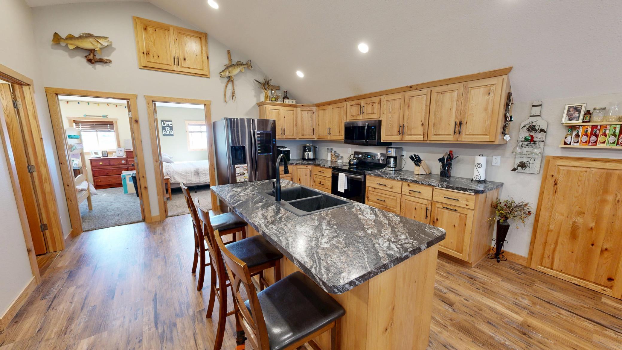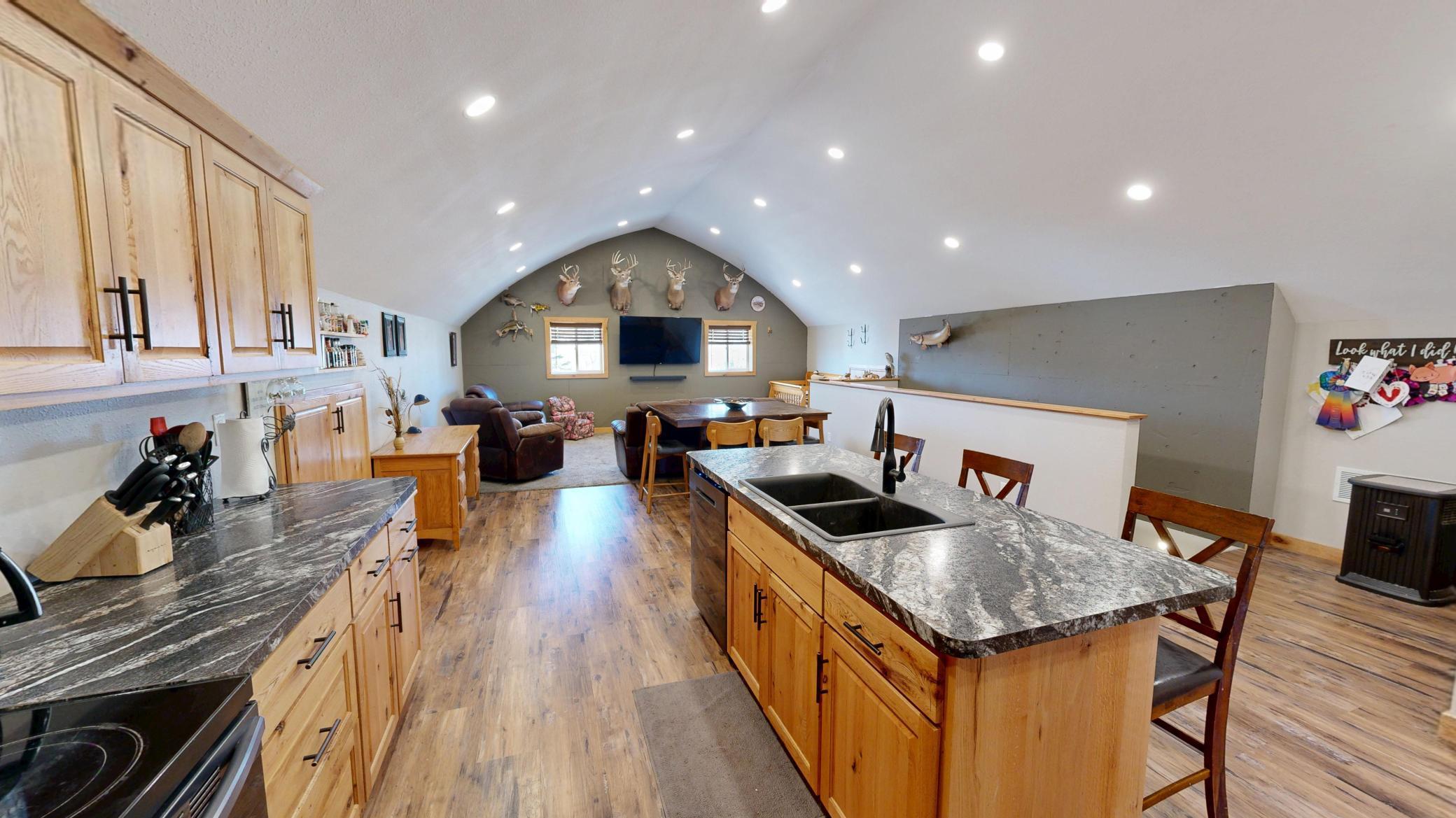 Public Remarks: Set Deadline for Offers: Wednesday April 1st at midnight. Barndominium on 7 Acres! Rural Versatile pole-barn-style renovated quonset combining rustic barn aesthetics with a modern dwelling space and featuring shop and garage space. Upon entering a mud room area there is immediately a laundry room with roughed in future bathroom, a large wide carpeted staircase to the dwelling space and a service door to the garage, shop, mechanical and recreational spaces. Upstairs the newer modern dwelling boasts an open concept living, dining and kitchen area with a full bathroom and spacious bedrooms. Well insulated, plenty of LED lighting and just a great overall use of space. There are two barns that have new tin roofs. One barn has worked well as a chicken coop and housed other livestock with an adjacent pasture. The constant pressure well comes into a utility building that has a floor drain, service door and overhead door perfect to store some toys. Newer septic sized up to four bedroom. Do not miss the virtual 3D tour and the pre-list home inspection. Be sure to ask your lender about underwriting this rural retreat. Call to schedule your private viewing today.
