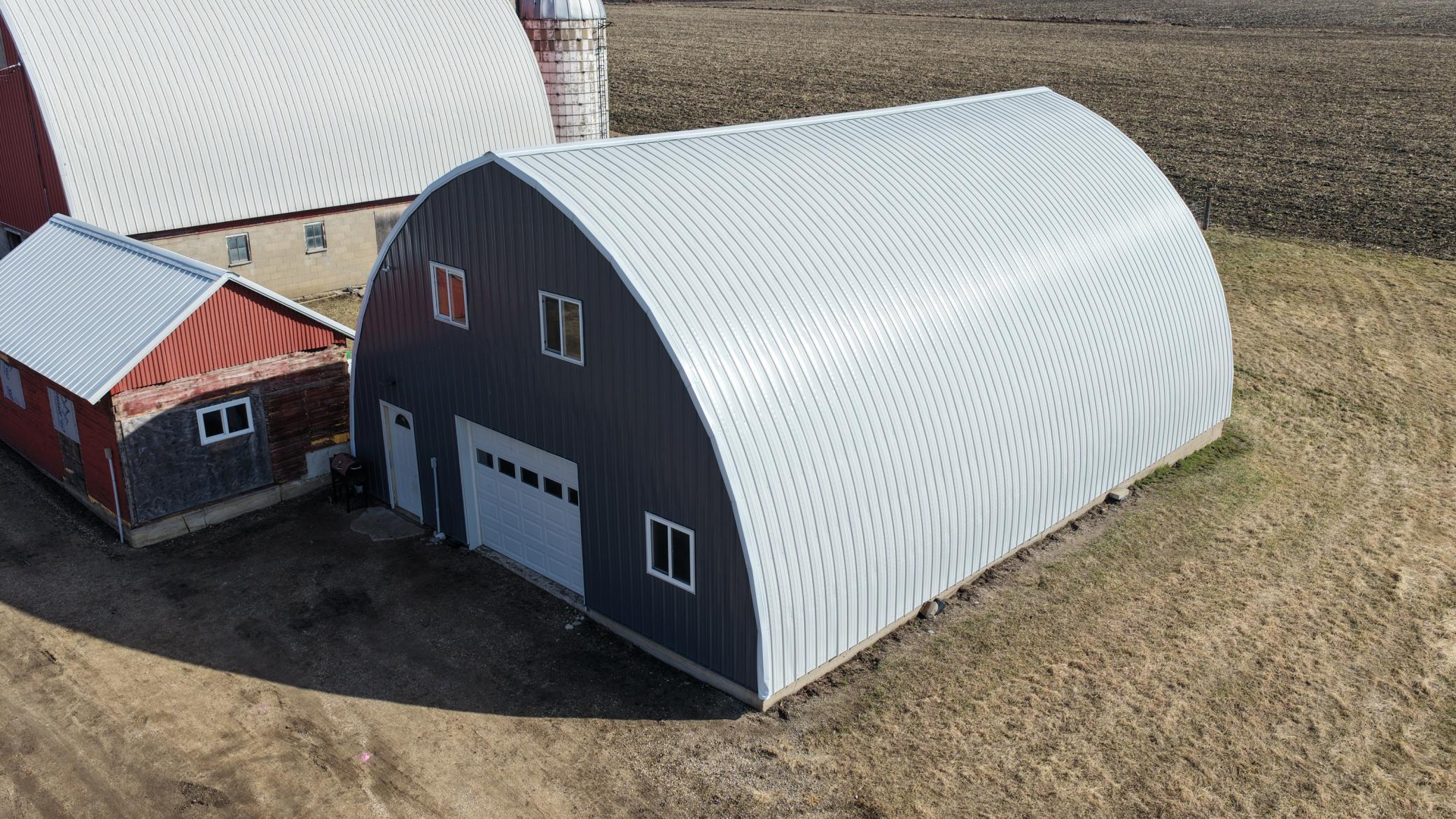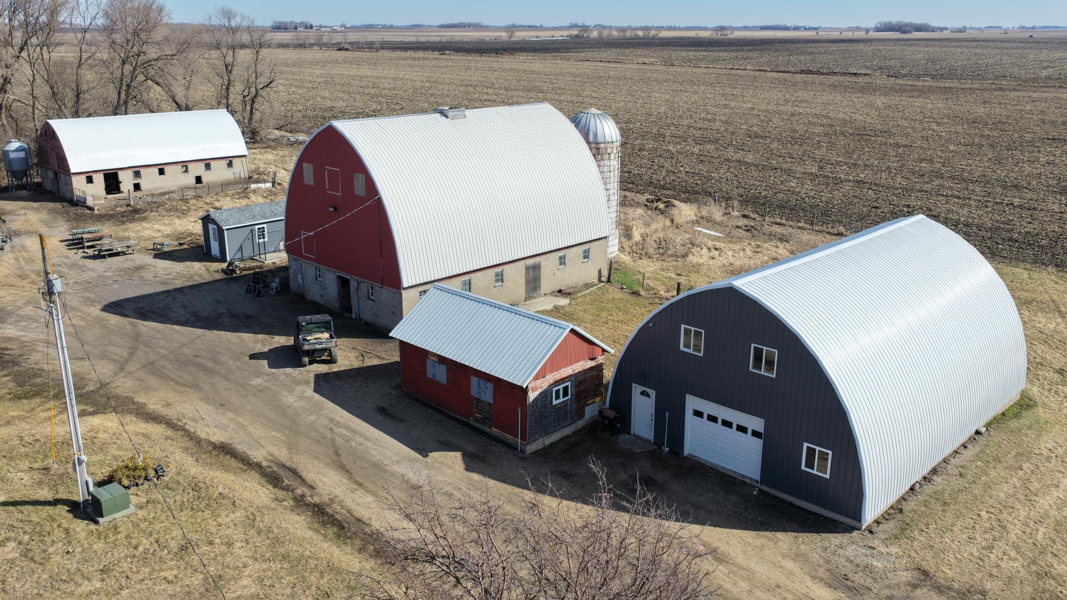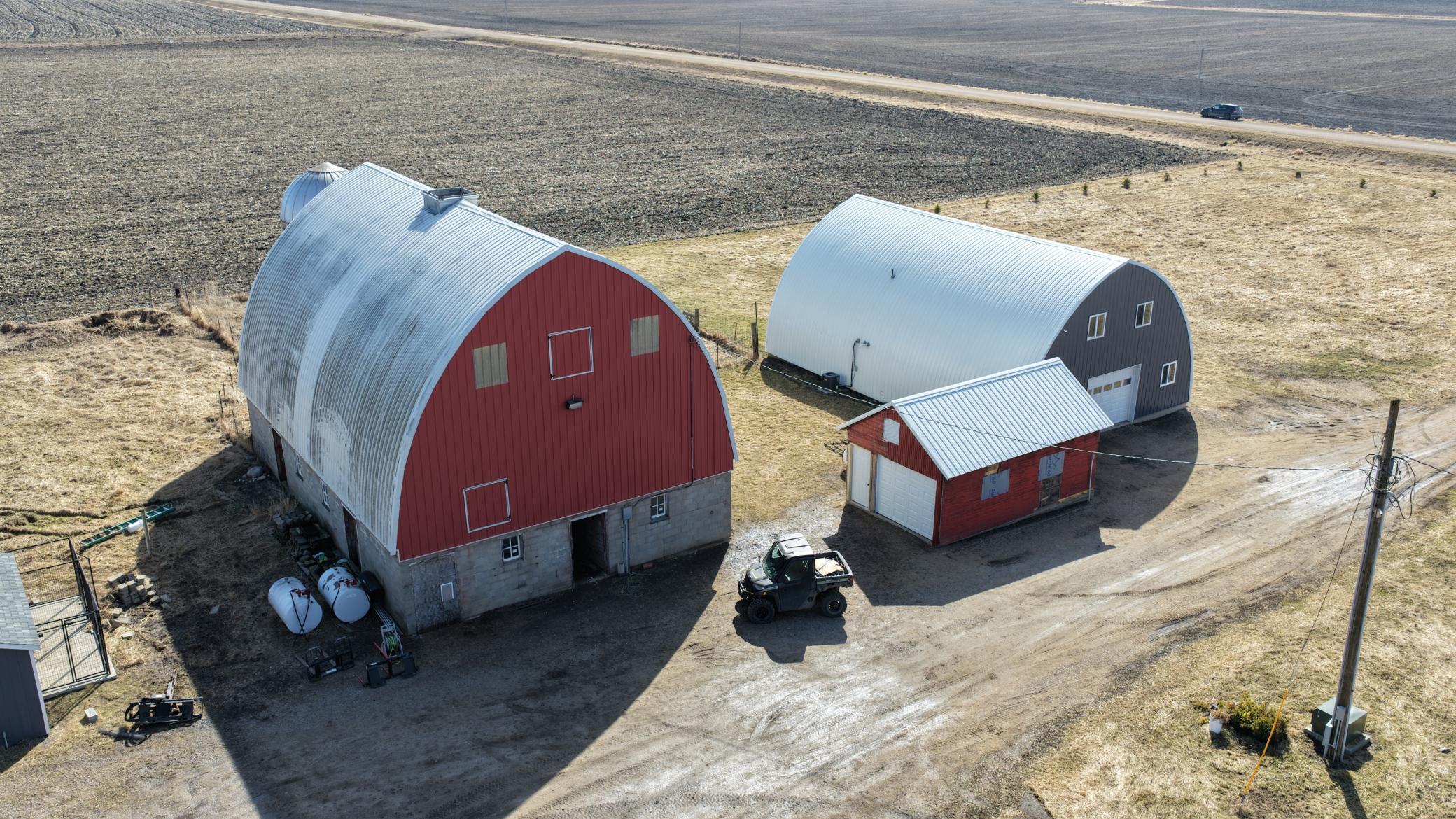 Set Deadline for Offers: Wednesday April 1st at midnight. Barndominium on 7 Acres! Rural Versatile pole-barn-style renovated quonset combining rustic barn aesthetics with a modern dwelling space and featuring shop and garage space. Upon entering a mud room area there is immediately a laundry room with roughed in future bathroom, a large wide carpeted staircase to the dwelling space and a service door to the garage, shop, mechanical and recreational spaces. Upstairs the newer modern dwelling boasts an open concept living, dining and kitchen area with a full bathroom and spacious bedrooms. Well insulated, plenty of LED lighting and just a great overall use of space. There are two barns that have new tin roofs. One barn has worked well as a chicken coop and housed other livestock with an adjacent pasture. The constant pressure well comes into a utility building that has a floor drain, service door and overhead door perfect to store some toys. Newer septic sized up to four bedroom. Do not miss the virtual 3D tour and the pre-list home inspection. Be sure to ask your lender about underwriting this rural retreat. Call to schedule your private viewing today.