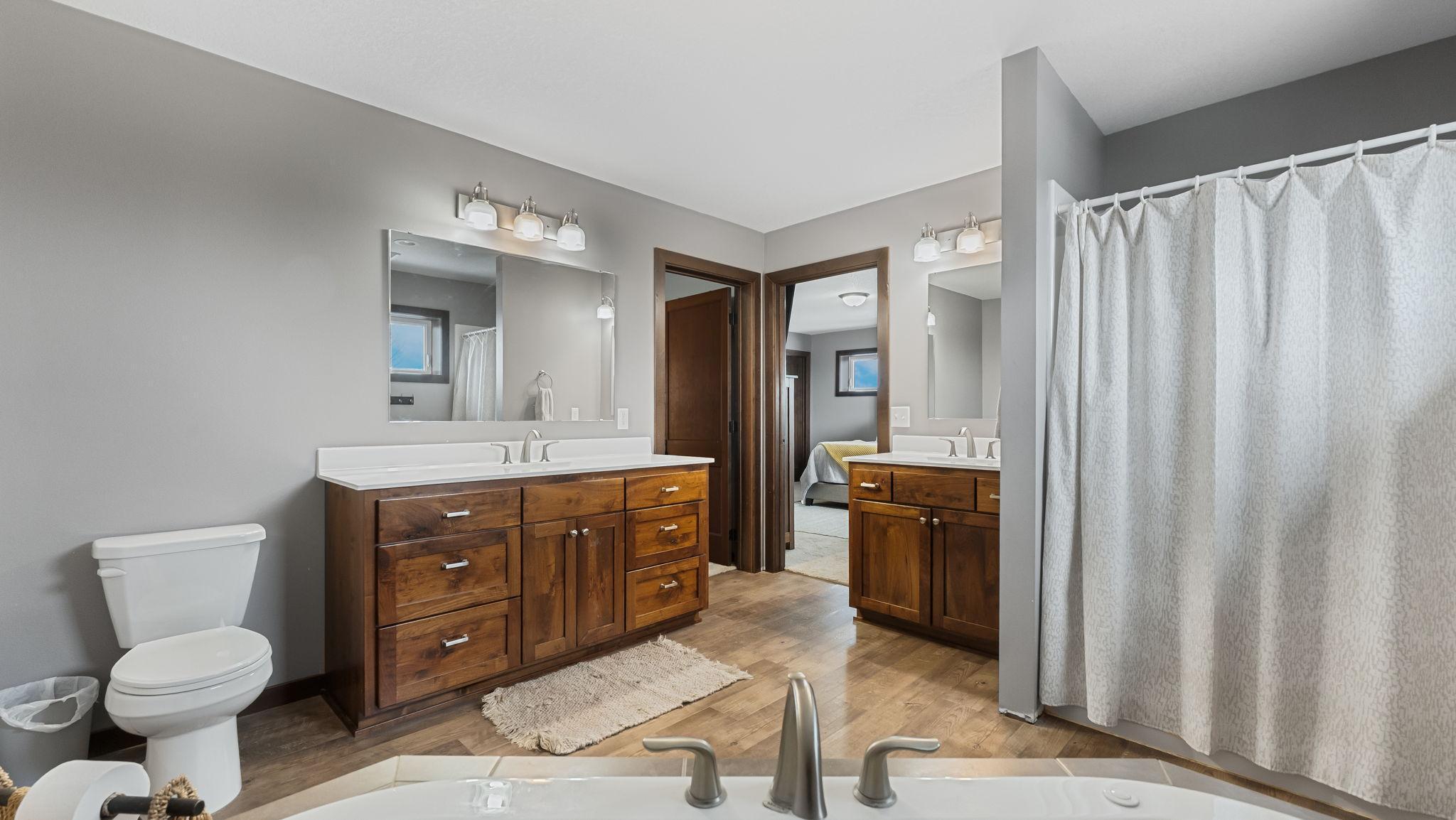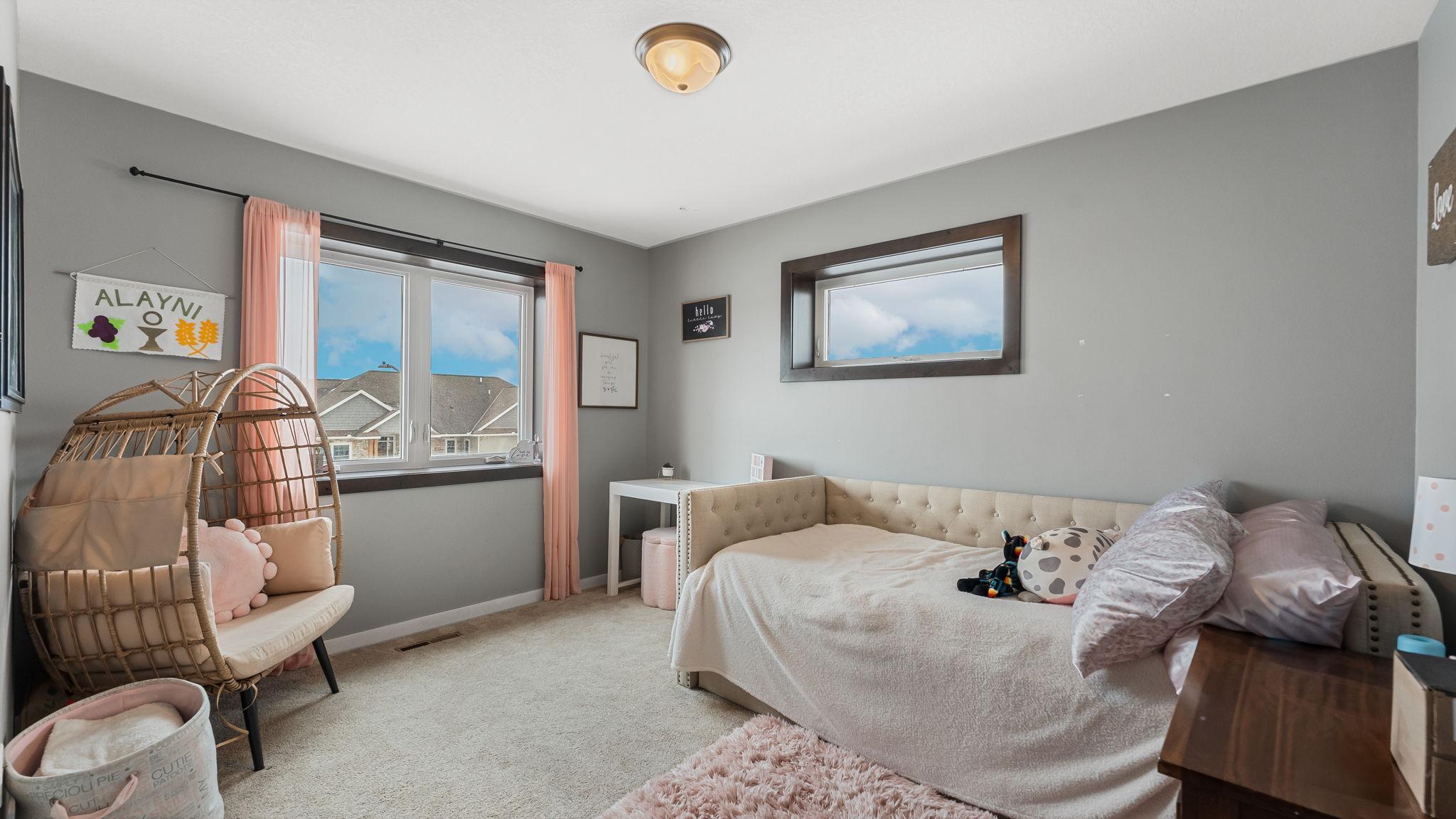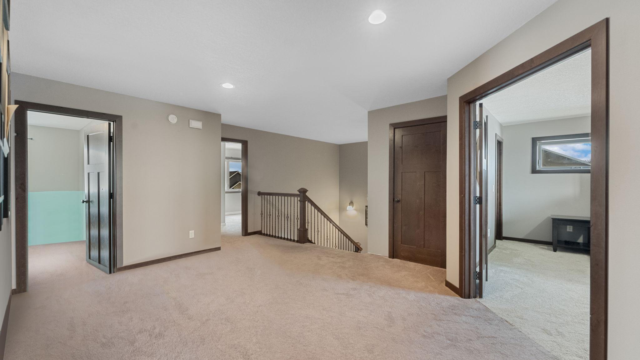 Upstairs features four bedrooms on one level, including a private primary suite with walk-in closet and en-suite bath. Generous bedroom sizes and ample storage throughout ensure room for everyone.