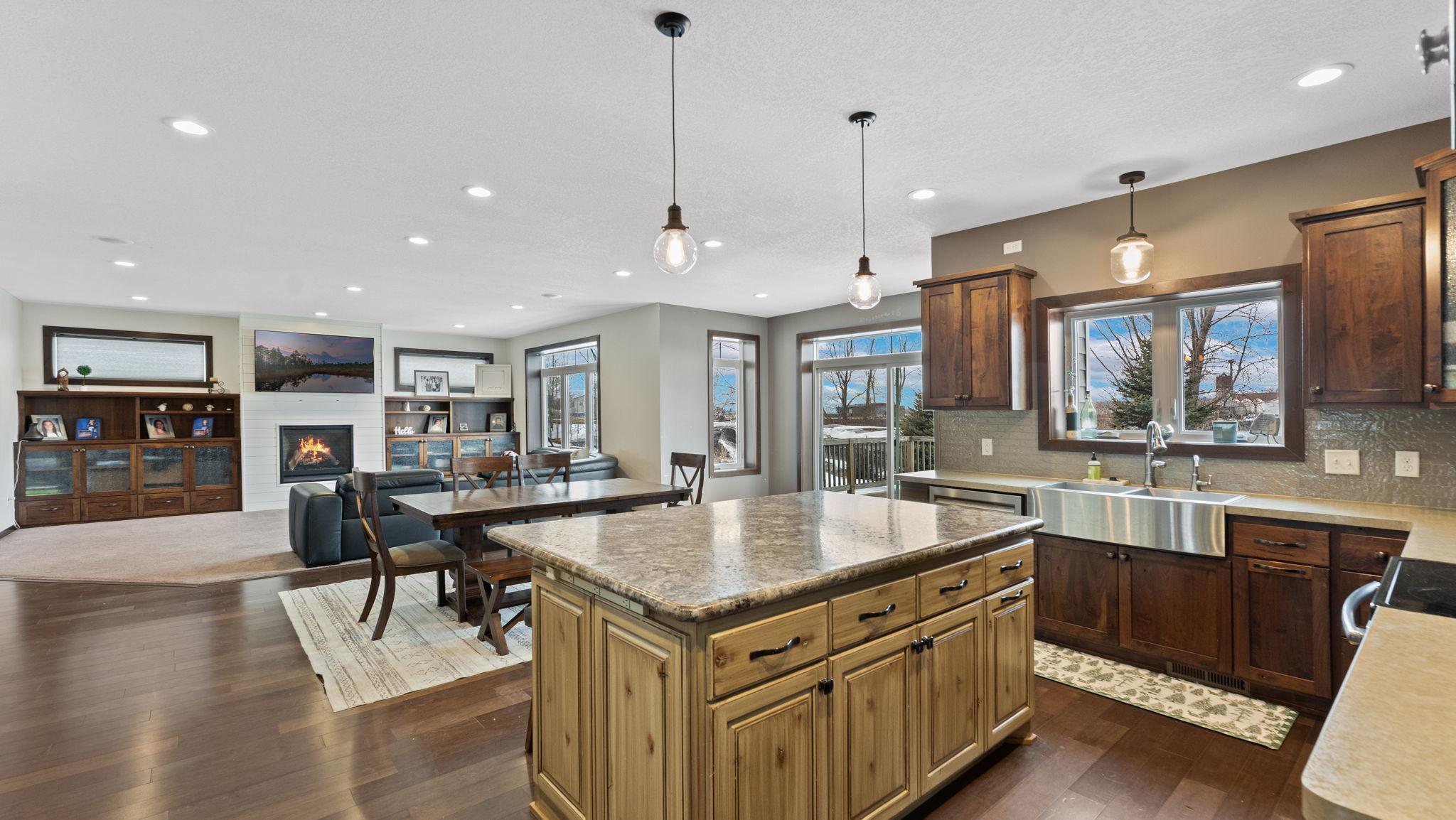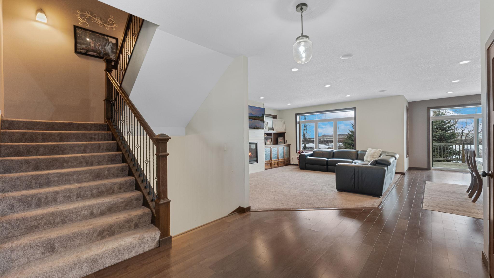 The main level showcases an inviting open floor plan, allowing the kitchen, dining, and living areas to flow seamlessly together — ideal for both everyday living and entertaining. A spacious entry and mudroom add function and convenience.