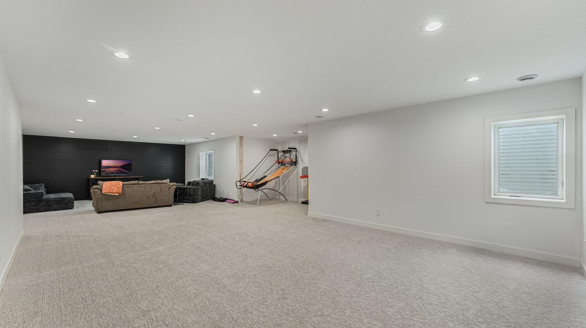 The lower level offers a large family room perfect for gatherings, movie nights, or recreation. Outside, enjoy the playset and dedicated basketball area, along with a three-stall attached garage.