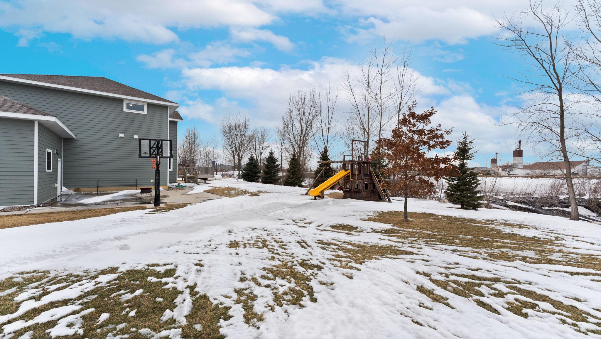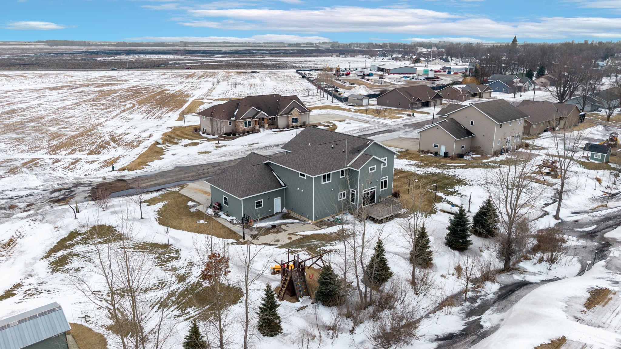 Located on a quiet dead-end road on the edge of Elrosa, this exceptional 5-bedroom, 5-bathroom home offers 4,684 finished square feet of thoughtfully designed living space — with the convenience of being just a short 10-minute drive to Interstate 94. Built in 2014 with Insulated Concrete Form (ICF) construction, this home was designed for superior strength, durability, and impressive energy efficiency. Full concrete walls provide enhanced insulation, storm resilience, and long-term structural integrity — a rare and valuable feature in residential construction. The main level showcases an inviting open floor plan, allowing the kitchen, dining, and living areas to flow seamlessly together — ideal for both everyday living and entertaining. A spacious entry and mudroom add function and convenience. Upstairs features four bedrooms on one level, including a private primary suite with walk-in closet and en-suite bath. Generous bedroom sizes and ample storage throughout ensure room for everyone. The lower level offers a large family room perfect for gatherings, movie nights, or recreation. Outside, enjoy the playset and dedicated basketball area, along with a three-stall attached garage. Quality construction, energy efficiency, generous space, and a peaceful setting — all with easy access for commuters.