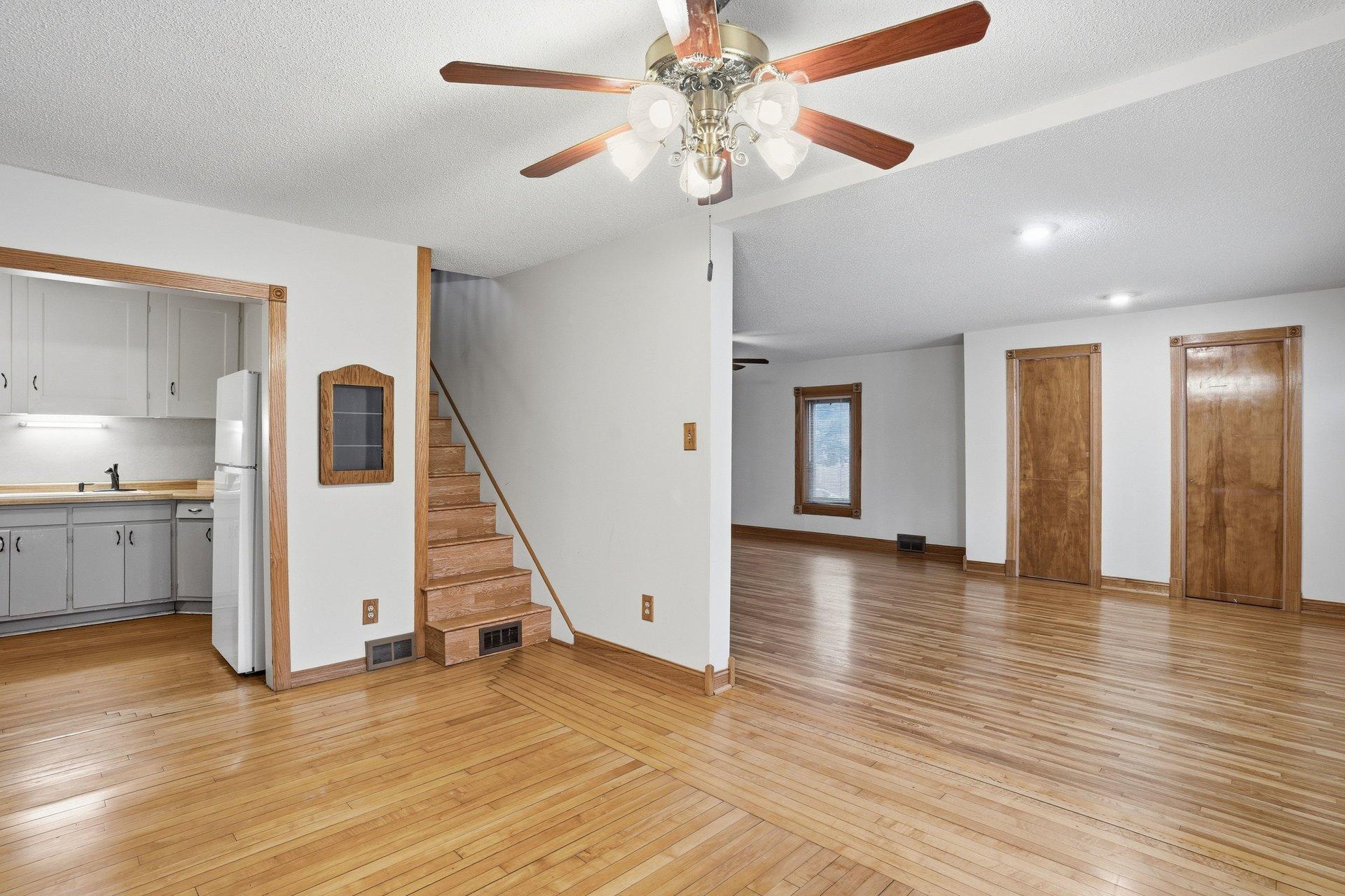 **Welcome to Northfield!** This charming home offers timeless hardwood floors throughout the main level and an open, light-filled living space perfect for everyday living and entertaining. The flexible main floor layout includes a room ideal for use as a third bedroom or home office, giving you options to suit your lifestyle. Upstairs, you'll find two comfortable bedrooms. Car enthusiasts and hobbyists will appreciate the spacious tandem garage, while outdoor enthusiasts will love the two garden sheds — perfect for storing tools, equipment, or seasonal items. The basement provides generous additional storage to keep everything organized. Don't miss this versatile home in a wonderful community!