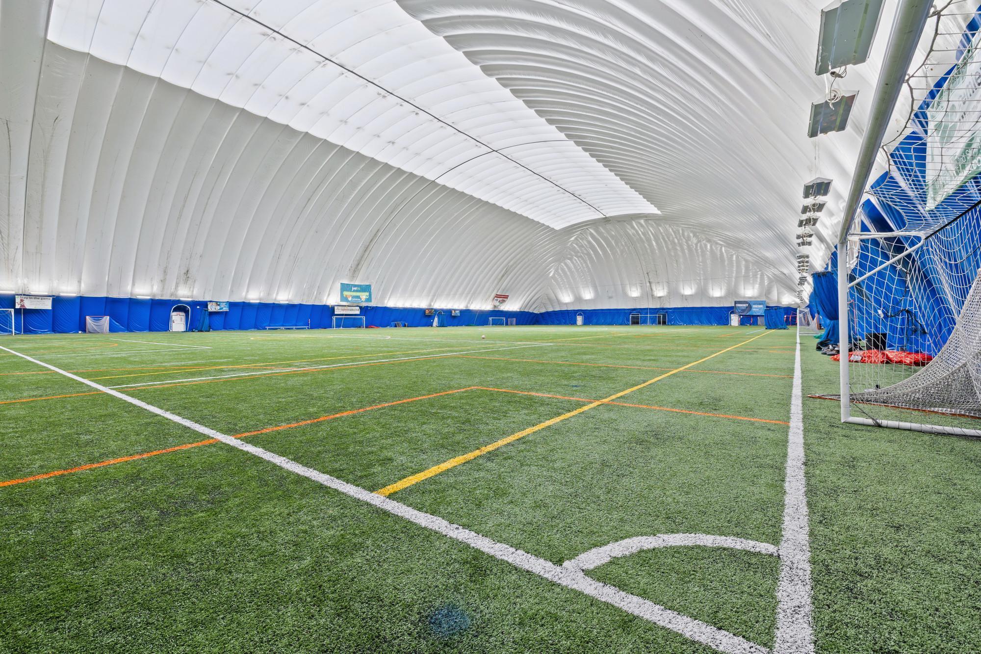 The facility provides a versatile indoor space ideal for soccer, softball, baseball training, leagues, tournaments, camps, and community events. The flexible layout allows for a variety of programming opportunities and potential revenue streams for an owner operator, sports organization, or recreation group.
