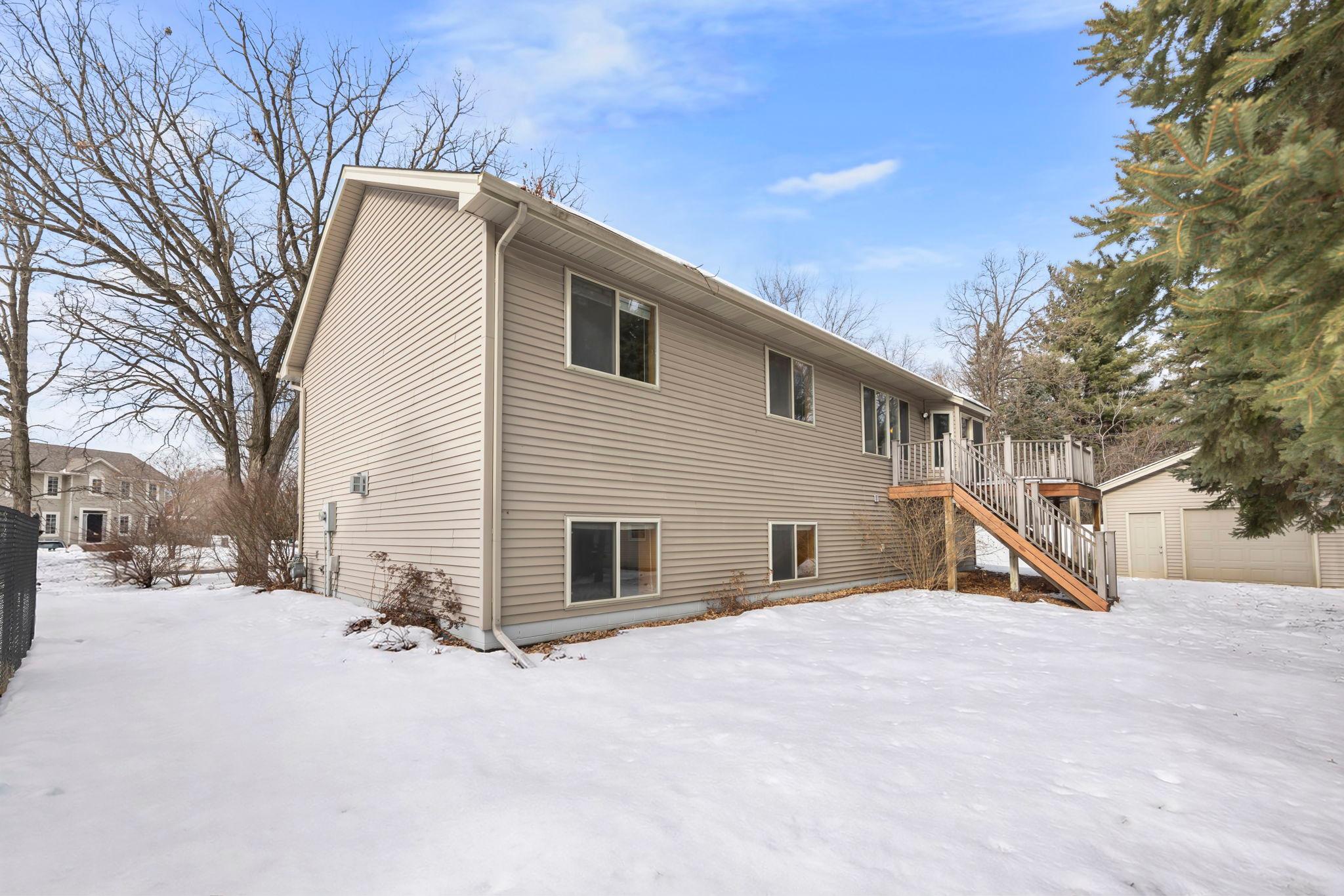 Fantastic home in a prime Blaine location offering an easy commute and access to parks, trails and Park & Ride. This well-designed home features a spacious vaulted living room that flows seamlessly into the eat-in kitchen with stainless steel appliances and ample dining space and walks out to a maintenance-free deck, perfect for everyday living and entertaining. The upper level includes three bedrooms on one level, including a primary suite with a private 3/4 bath featuring a granite countertop. A full upper-level bath also offers a granite countertop for an updated feel. The finished lower level adds exceptional flexibility with a huge living area, wet bar, gas fireplace, built-in cabinetry, Bose speakers, a large laundry room and abundant storage. Additional highlights include a 3-car garage plus a 16x12 backyard garage or shed ideal for hobbies, toys or extra storage. This home offers comfort, space and functionality in a sought-after setting.